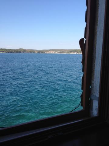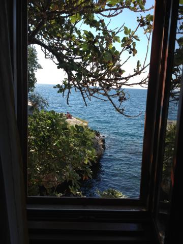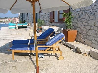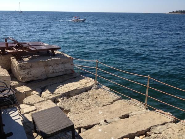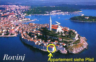 Potpuno renovirani i suvremeni apartman za max. 7 osoba nalazi se na samom moru, u staroj jezgri grada Rovinja. Apartman ima vrhunsku poziciju pošto ima pristup plaži te na plaži i gosti apartmana imaju svoj stol na raspolaganju. Gotovo svi prozori apartmana pružaju pogled na more. Apartman se sastoji od suvremeno opremljene kuhinje i blagavaone sa sofom i 3 sobe (svaka soba ima svoje kuoatilo). Sobe imaju bračni ležaj te svaka soba ima TV/SAT. Kuhinja je opremljena sa perilicom za suđe, priborom za jelo za 10 osoba, kuhalom za kavu, filter mašinom...Apartman ima i perilicu rublja.