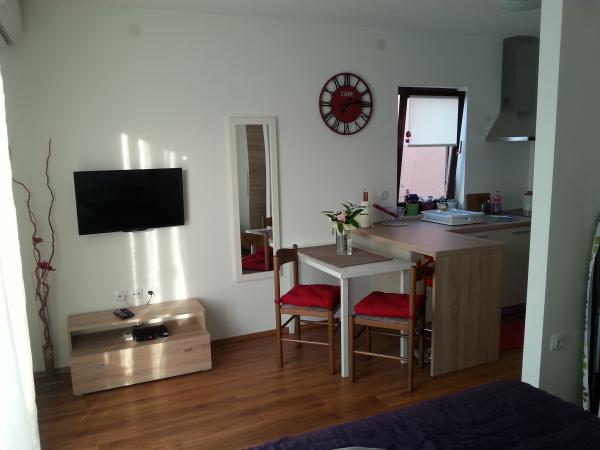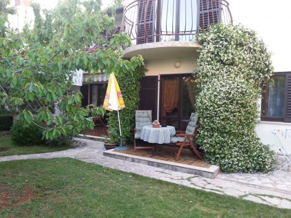 Apartman i novouređeni studio apartman nalaze se u obiteljskoj kući, u mirnom dijelu Rovinja, svega nekoliko minuta hoda do plaže te 2 km od centra grada.Apartmani su kompletno opremljeni (klima,tv,satelitska,internet,hladnjak,..) i raspolažu terasama.Gostima je na raspolaganju vrt te roštilj za ugodna druženja okružen zelenilom.Parking osiguran u dvorištu kuće.