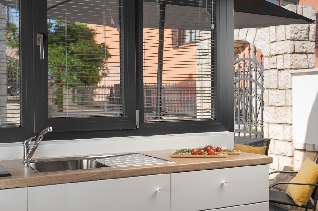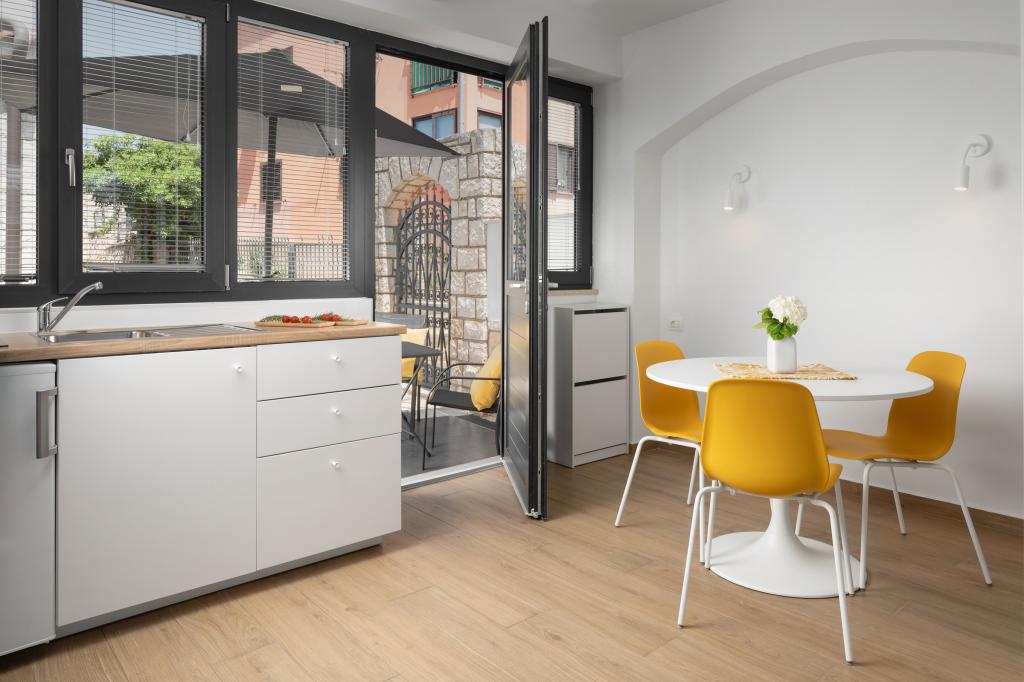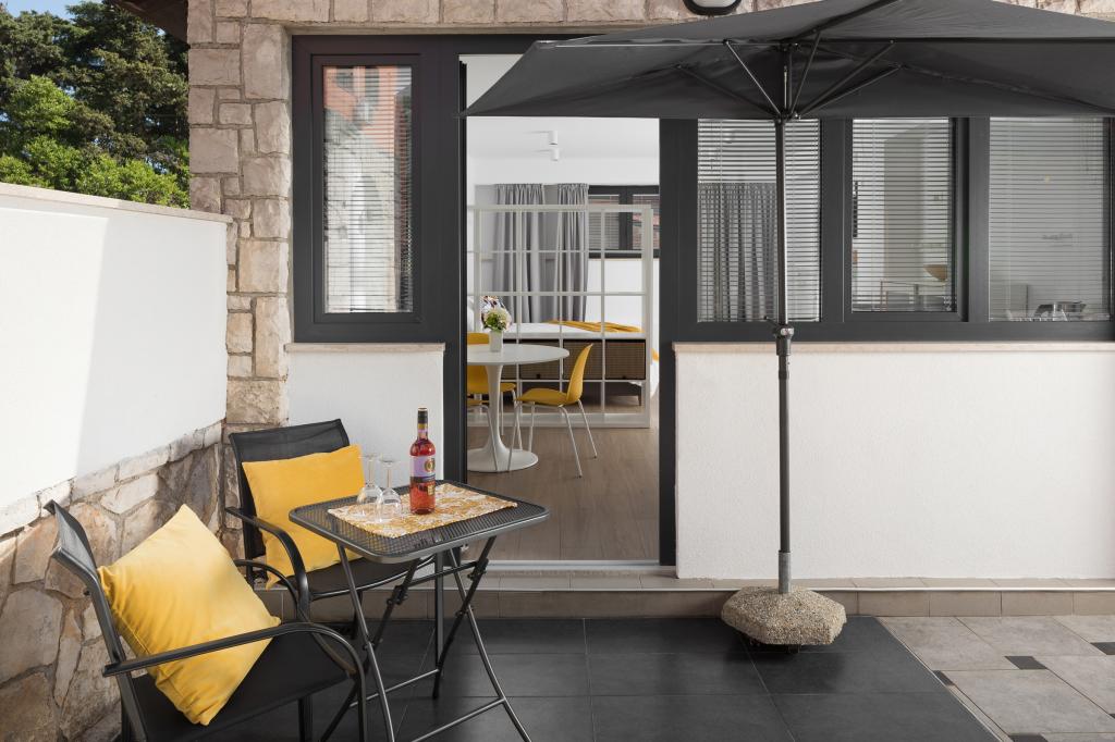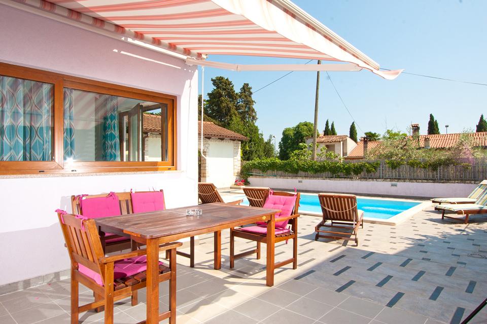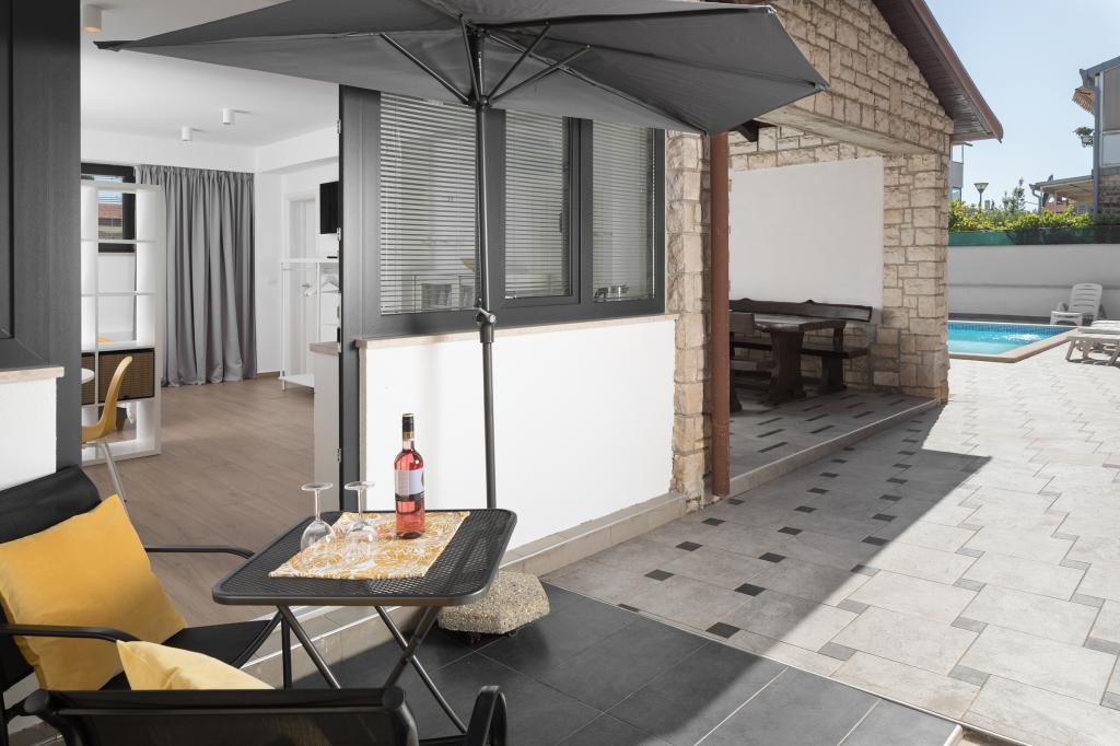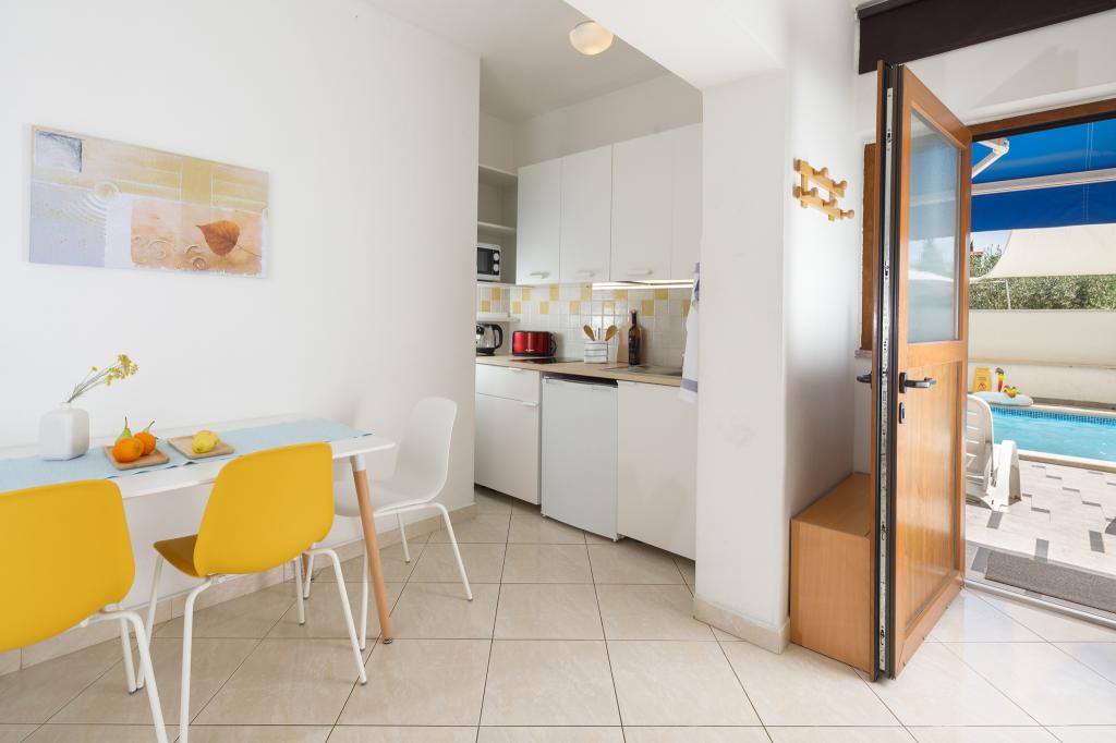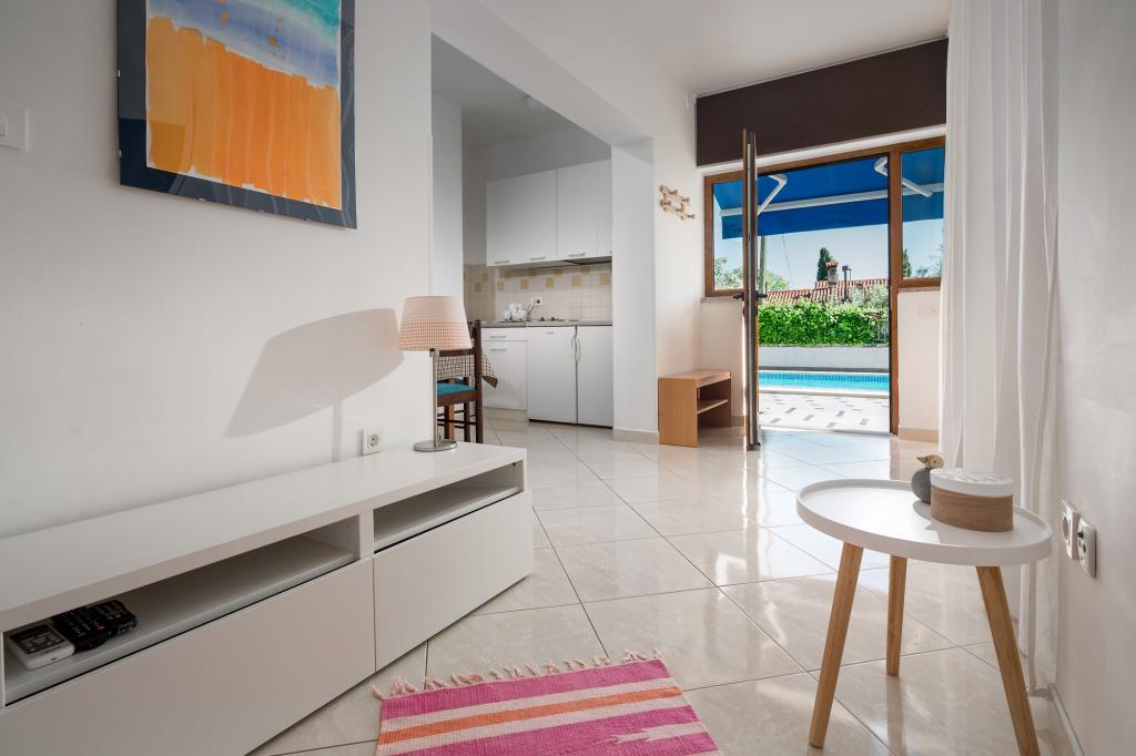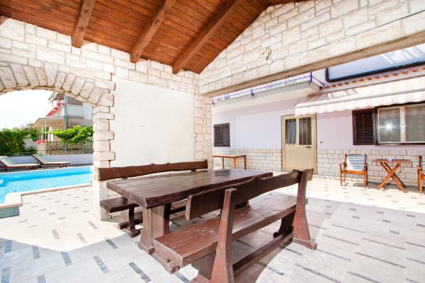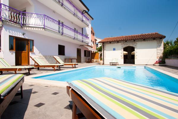 Objekat se nalazi u mirnom djelu grada, u blizini se nalaze restorani, apoteka i trgovine hrane ( 10-100m) Centar grada je na 800m udaljen do kojeg se stiže za oko 10 minuta hoda, a najbliže plaže oko 1000m ili 15 minuta hoda. U stražnjem dvorištu kuće se nalazi bazen i sunčalište koje je na raspolaganju gostima za njihov ugodan boravak i opuštanje, okruženo je zelenilom i zaklonjeno od ostalih kuća.
