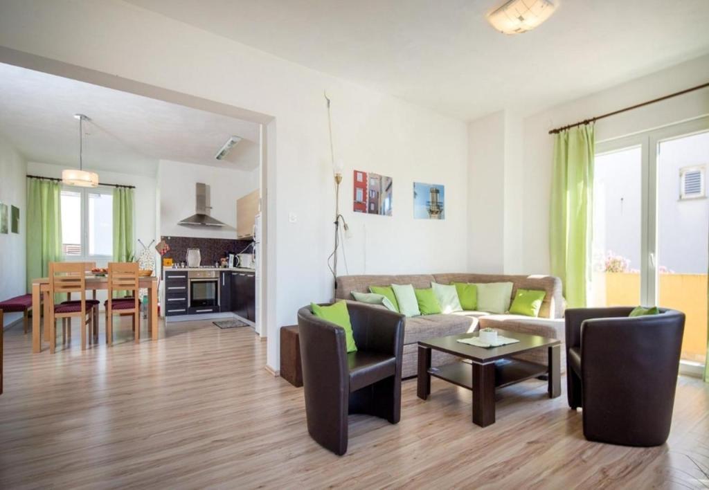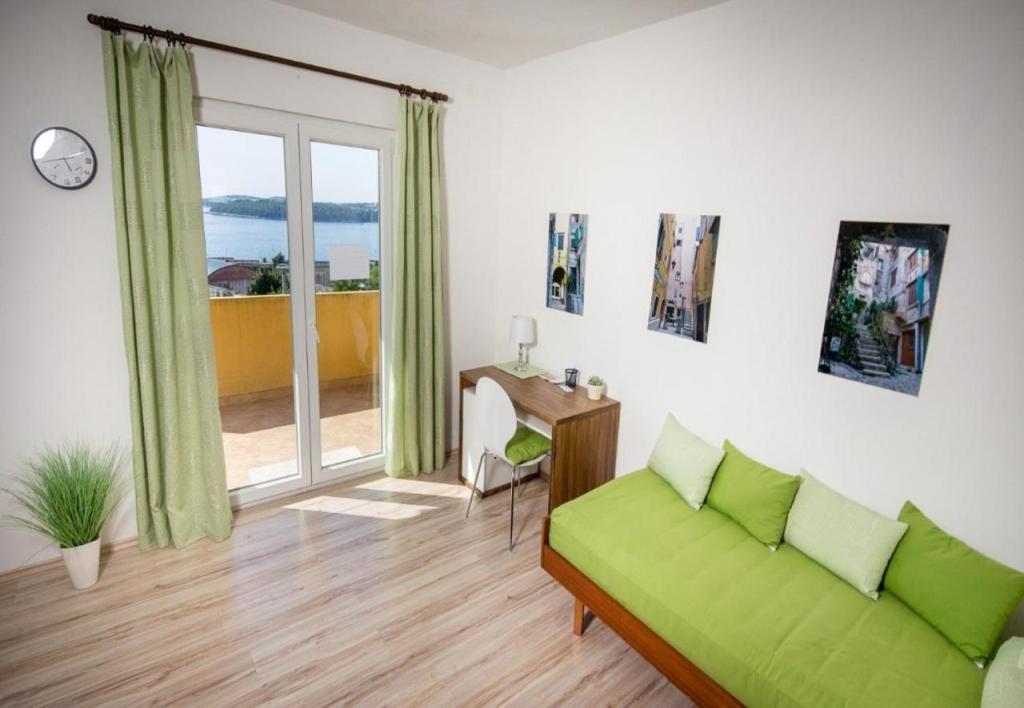 Veliki, prostrani, lijepo uređeni apartman od 100 kvadrata sa dvije spavaće sobe i dva wc-a. Prekrasna terasa sa pogledom na more na kojoj smo uživali svaku večer. Za razliku od većine apartmana u Rovinju, apartman ima parking. Topla preporuka!