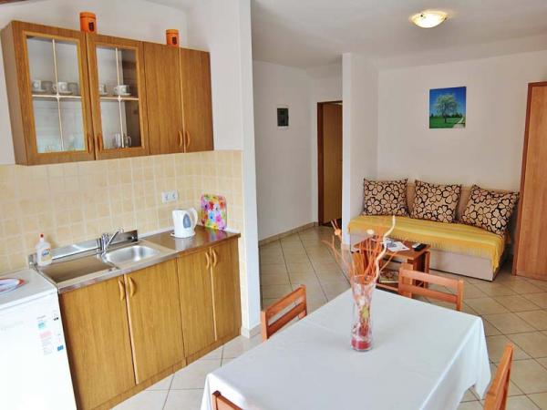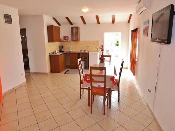 Apartman je vrlo čist, održavan, kuhinja (čajna kuhinja) opremljena potrebnom opremom za pripremu obroka - potpuno dovoljna, dodatna prednost je natkrivena terasa na kojoj možete sjediti uz kavu ili navečer popiti piće. Područje je vrlo mirno i možete se opustiti. Domaćinica gospođa Dragica vrlo lijepo i korisno. Do najbliže plaže max. 15 minuta hoda, do grada oko 20 minuta. preporučiti