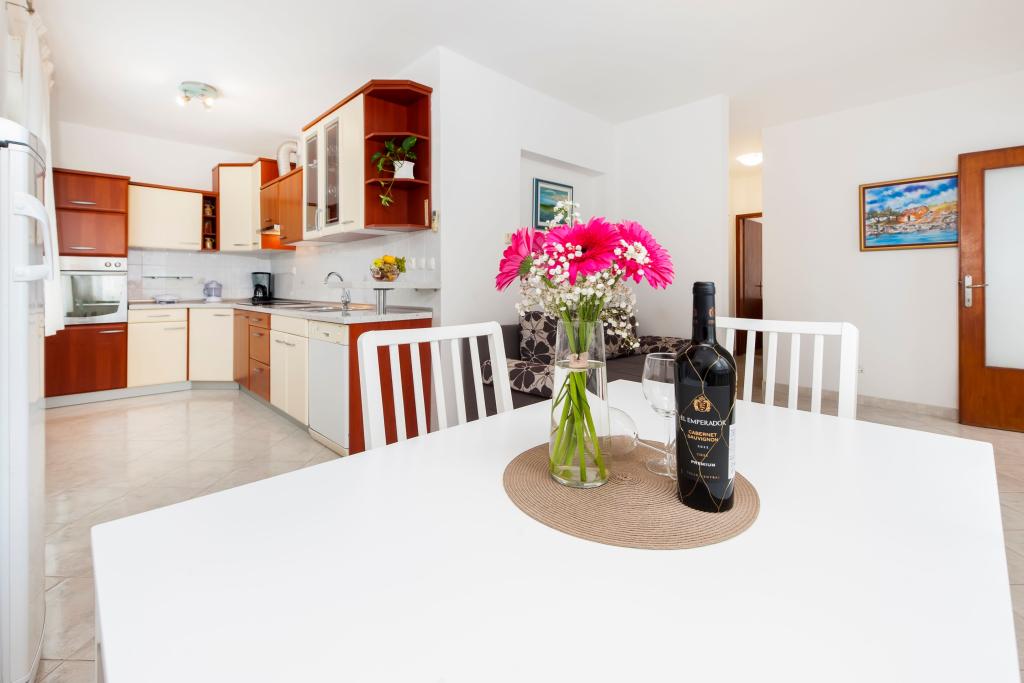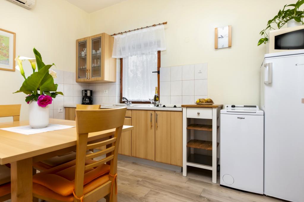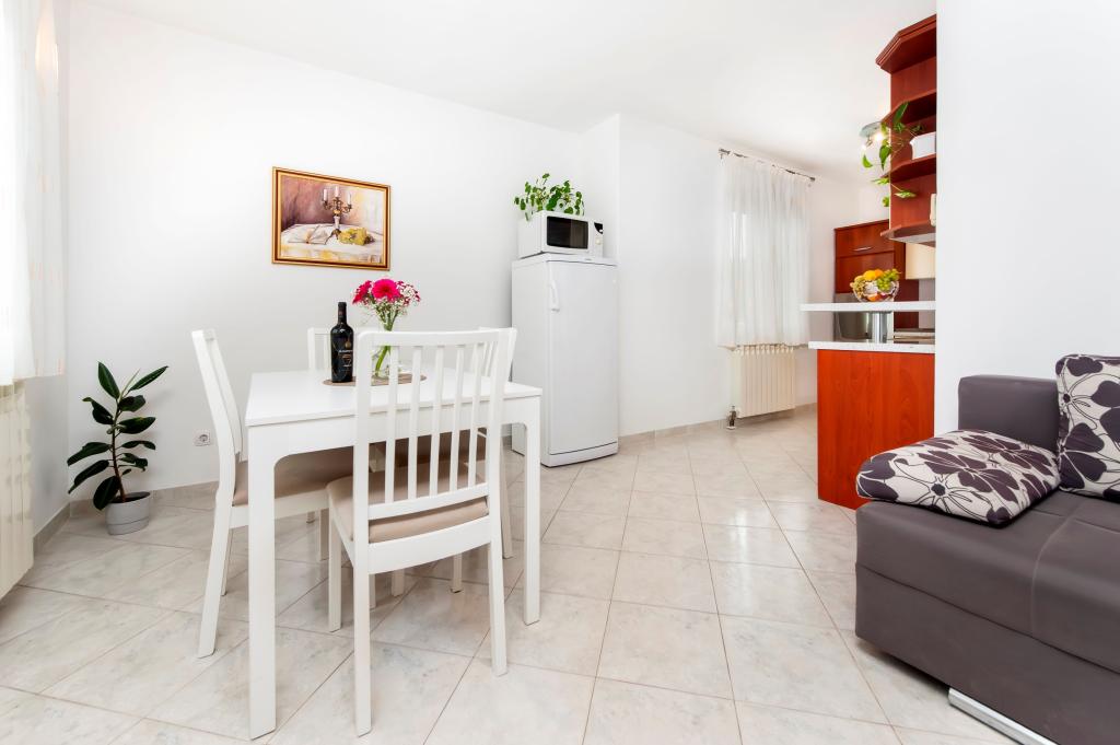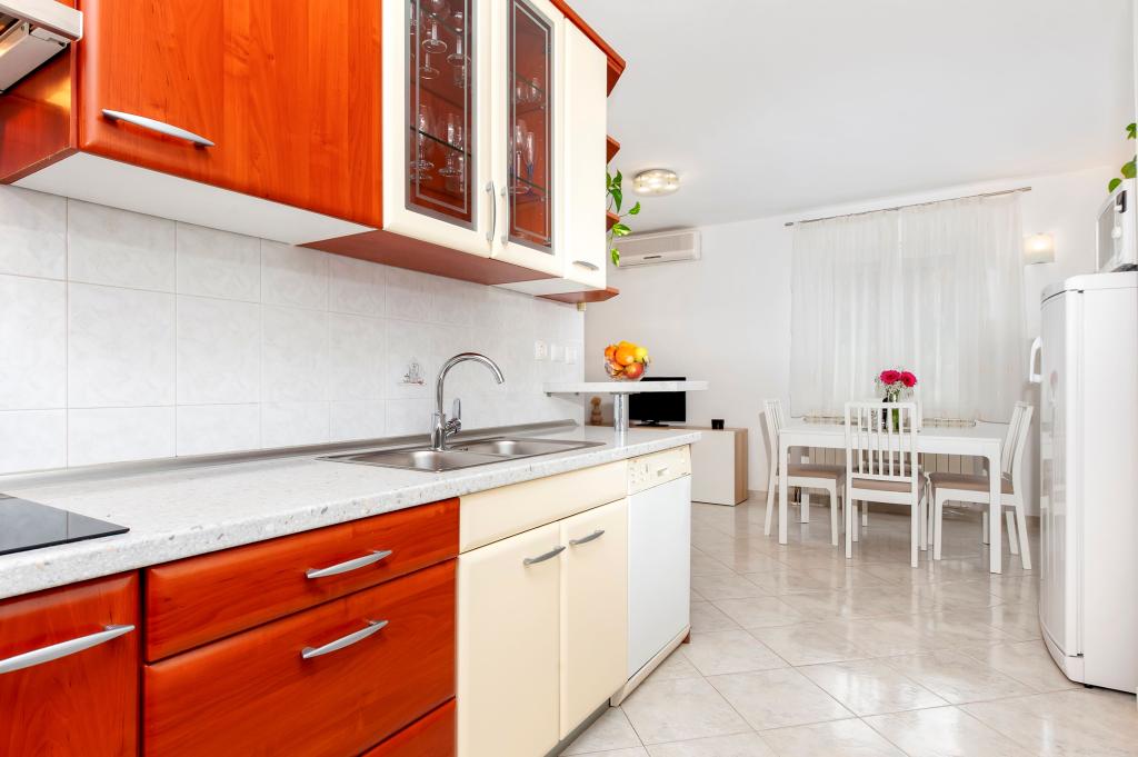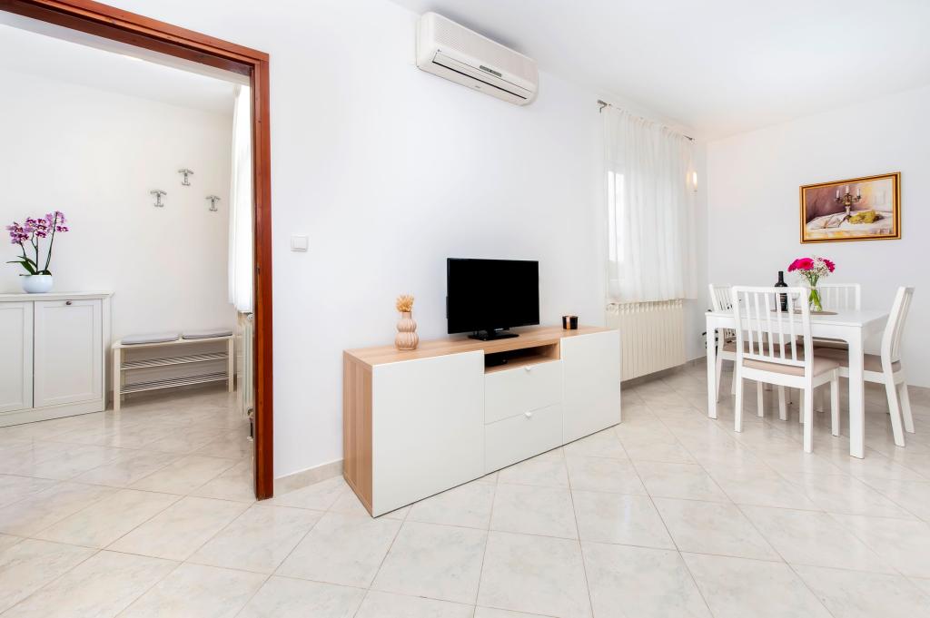 Dječji krevetić i dječja stolica za hranjenje na upit gratis. Apartmani su kompletno opremljeni, klimatizirani. U cijenu uključena posteljina, ručnici za korištenje u apartmanu, korištenje klime, WIFI, jedno parkirno mjesto po apartmanu u dvorištu. Zamjena posteljine i ručnika po dogovoru. Perilica rublja u apartmanima A2+1 SANDRA i A4+1 SANDRA Perilica suđa u apartmanu A4+1 SANDRA
