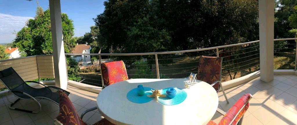 Kuča je na mirnoj lokacije nema prometa. Do plaže sitni šljunak i restorana je 150m. Idealno za djecu. Besplatno se mogu bicikli koristit. Ispred kuće je mali park. Svaki apartman je dobro opremljen sve ima sto je za ugodan odmor potrebno. Imamo dosta stalni gostiju sto su jako zadovoljni. Trgovina 300m. Do centra 2km.
