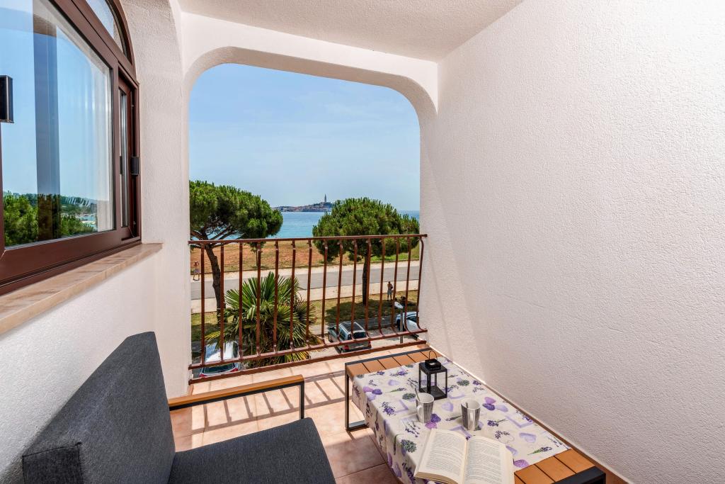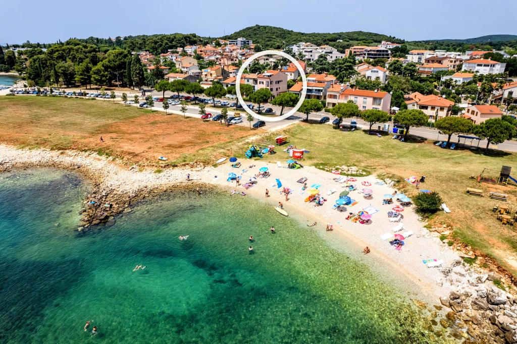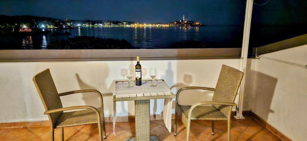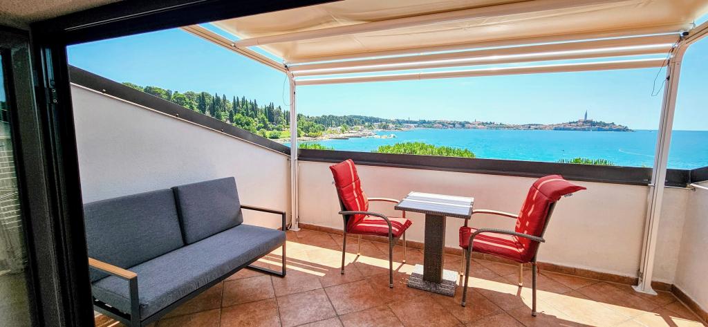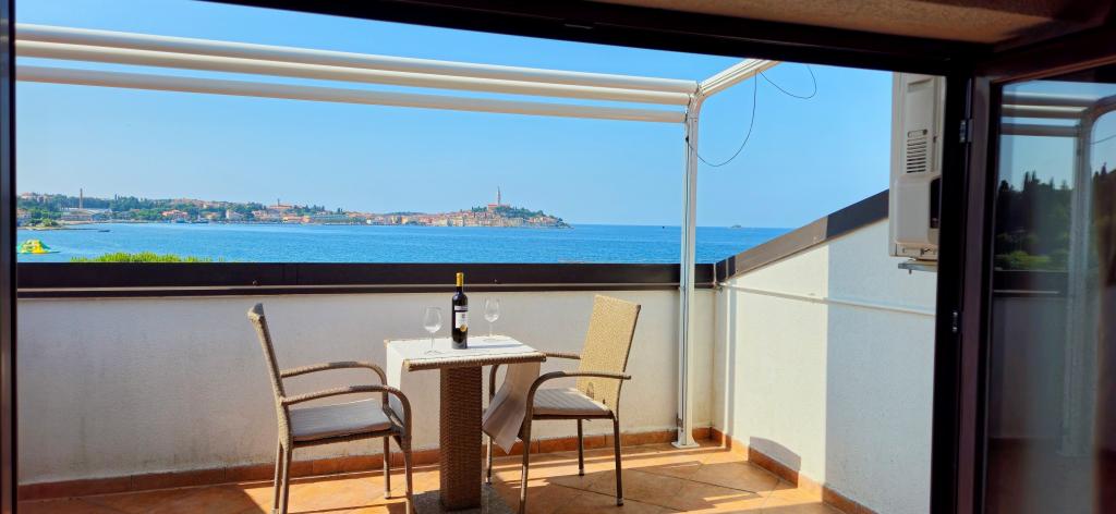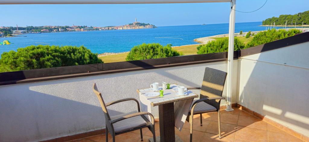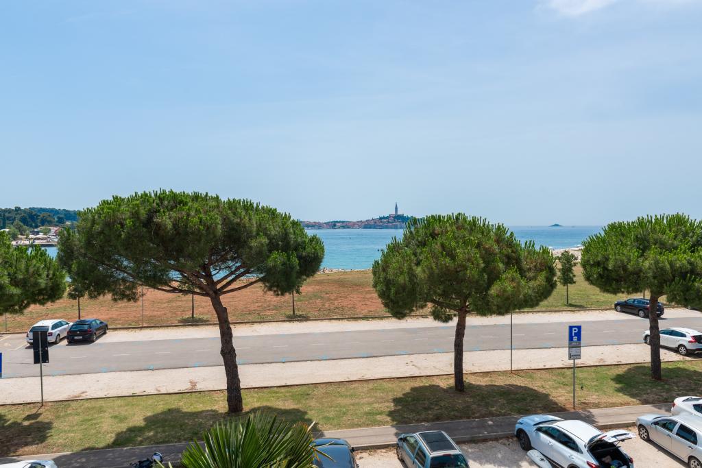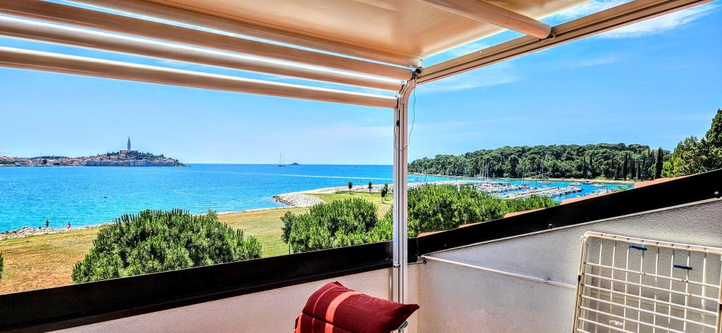 40 metara od mora i plaže, 3 nova apartmana u Rovinju, prvi red! Prekrasan pogled na more i rovinjski zaljev te na stari dio grada Rovinja! Svaki apartman ima terasu s pogledom na more i Rovinj, stol i stolice te zaštitu od sunca .