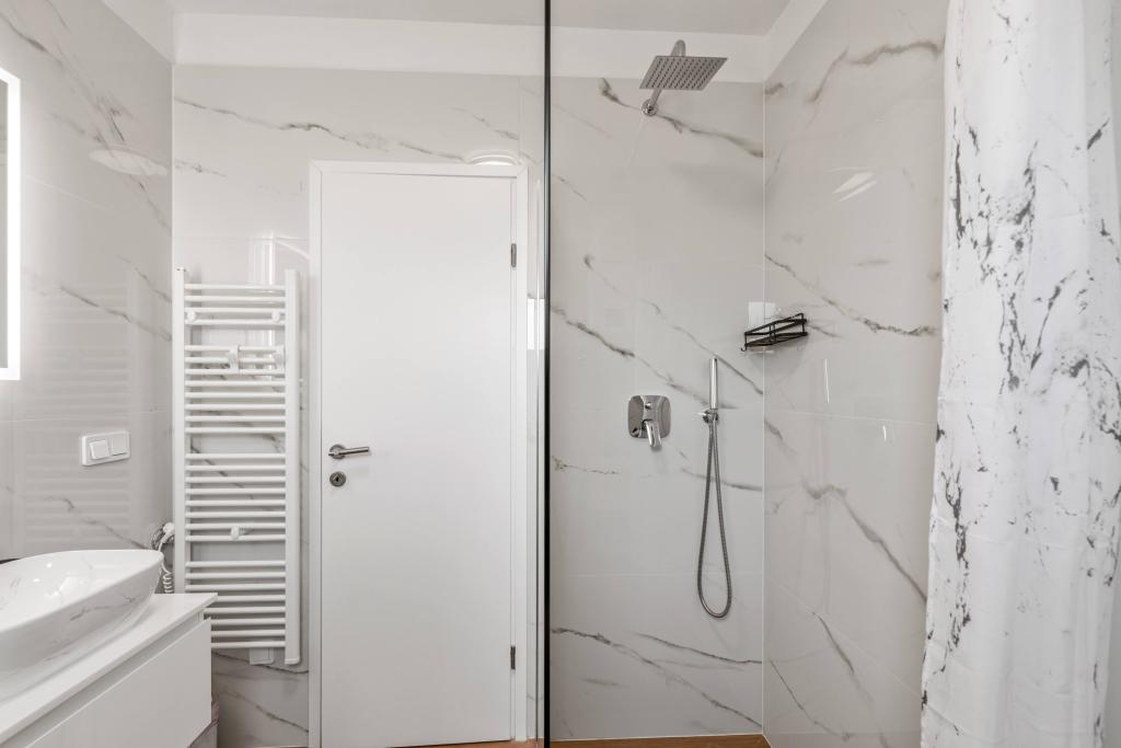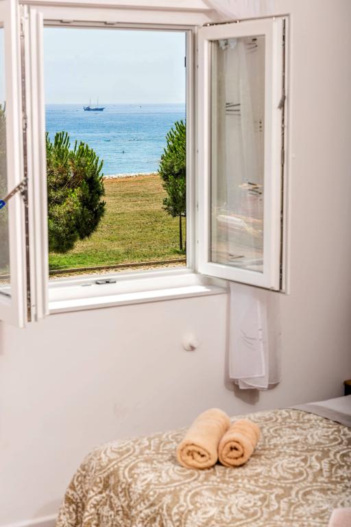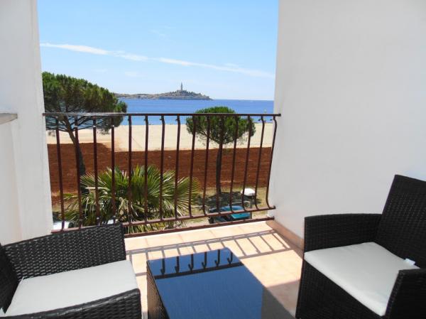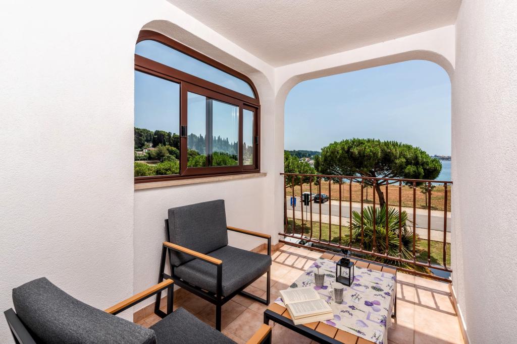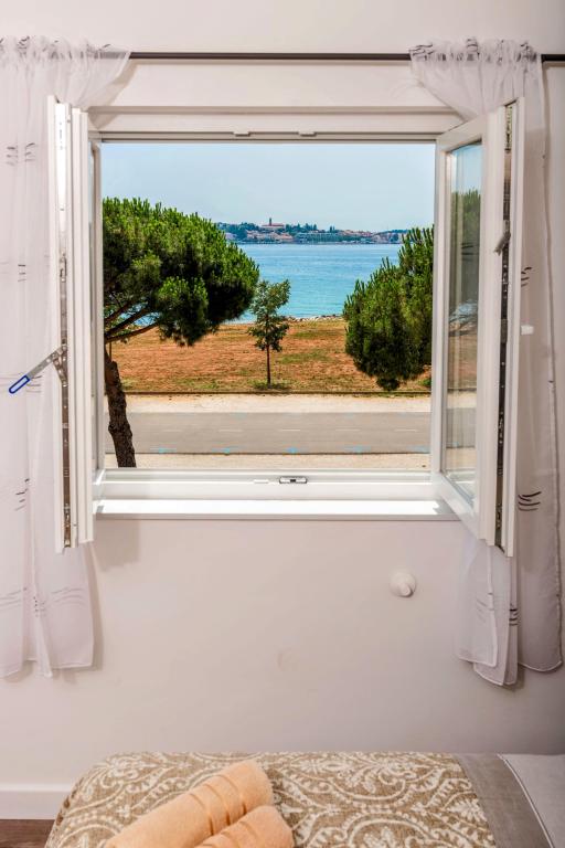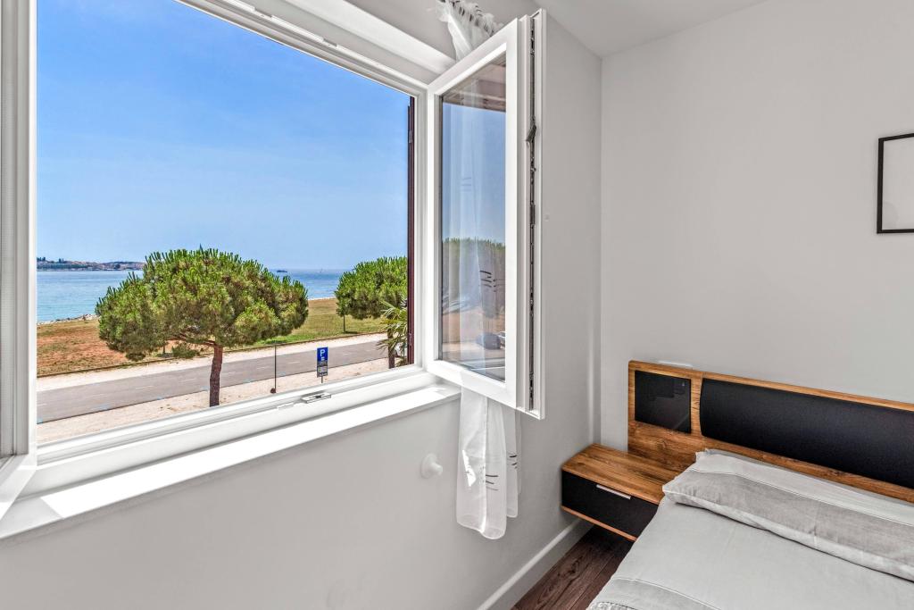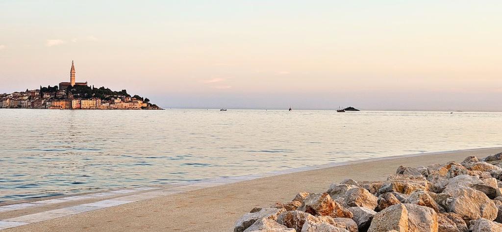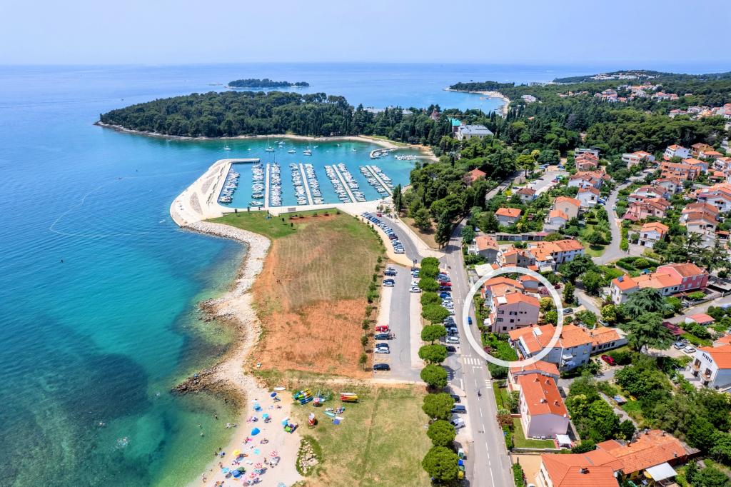 40 metara od mora i plaže, 3 nova apartmana u Rovinju, prvi red! Prekrasan pogled na more i rovinjski zaljev te na stari dio grada Rovinja! Svaki apartman ima terasu s pogledom na more i Rovinj, stol i stolice te zaštitu od sunca .