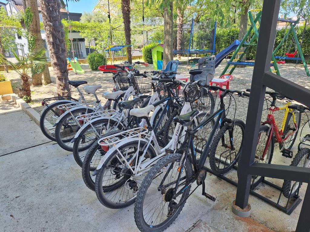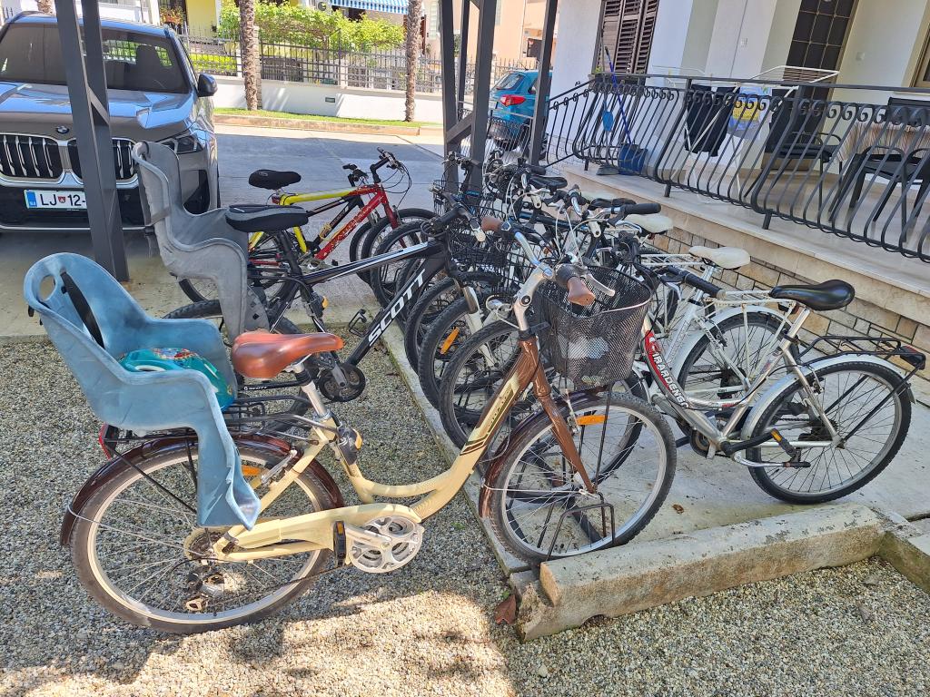 Imamo 10 bicikla, upotrebu garaze i ves masine, grill i bezicni pristup internetu za sve nase goste. Sve GRATIS! U blizini nase kuce (200m) nalaze se veliki supermarket, caffe bar, pizzeria, restoran, turisticka agencija, ....