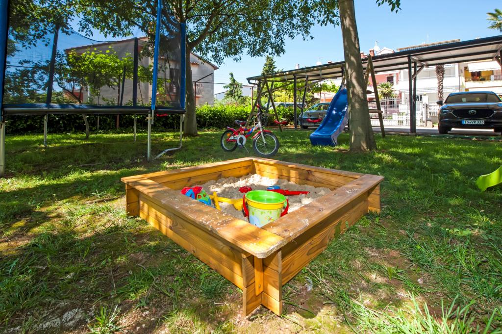 Nasa se kuca nalazi u jako mirnom kvartu, 10 minuta pjeske od grada i 5 minuta od plaze (Cuvi – Villas Rubin, Skaraba, Punta corrente, Zlatni rt). Ima veliki ogradjeni vrt sa zatvorenim parkiralistem.