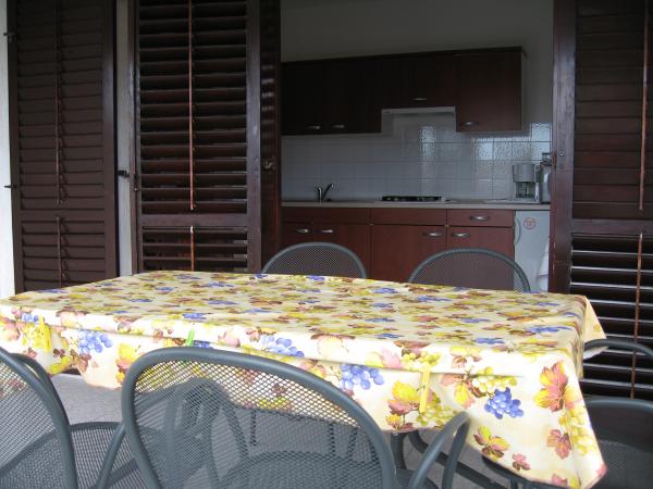 kuća se sastoji od 5 apartmana udaljena 100 m od mora na veoma mirnom mjestu.