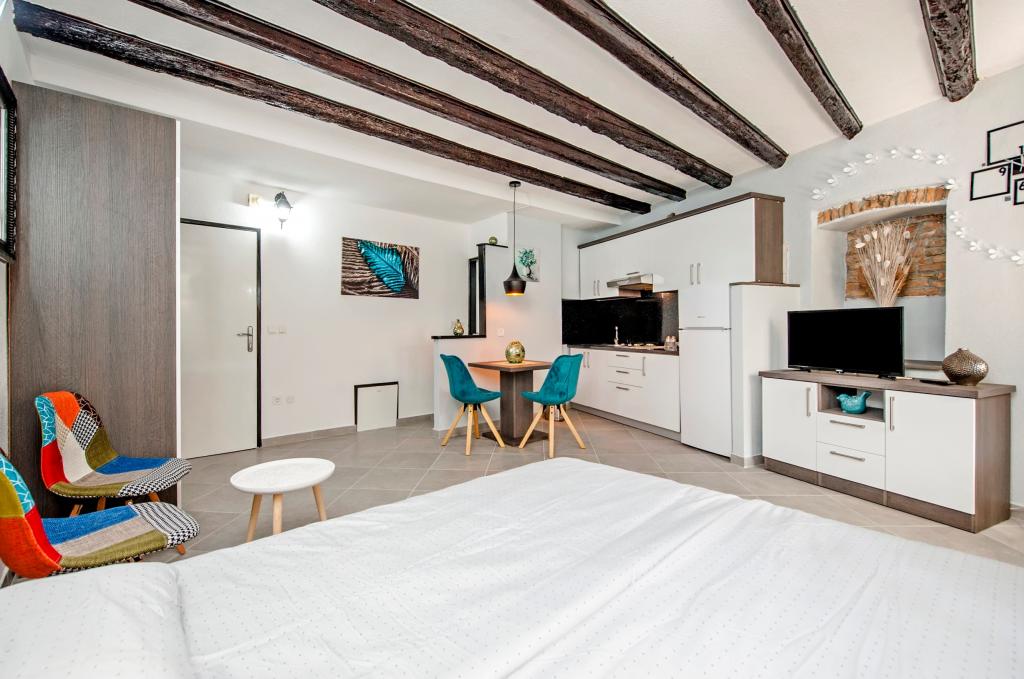 Moderno uredjen apartman sa uredjenom terasom,u mirnom dijelu grada 5 min hoda do centra te 10 min od plaže i 15min od parka prirode.