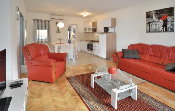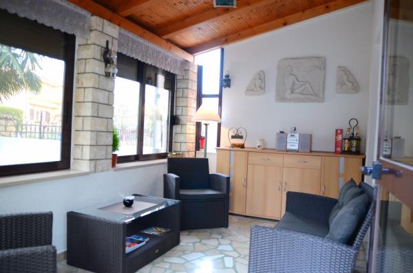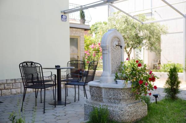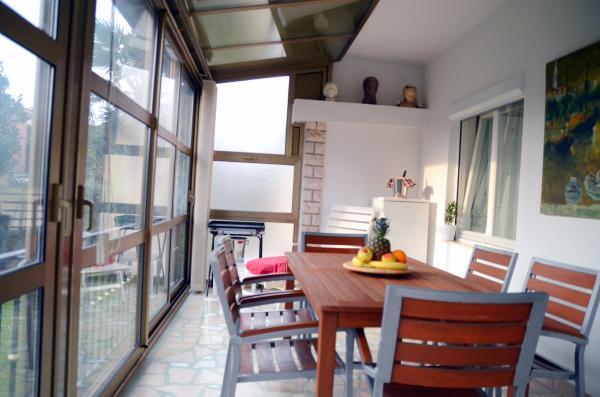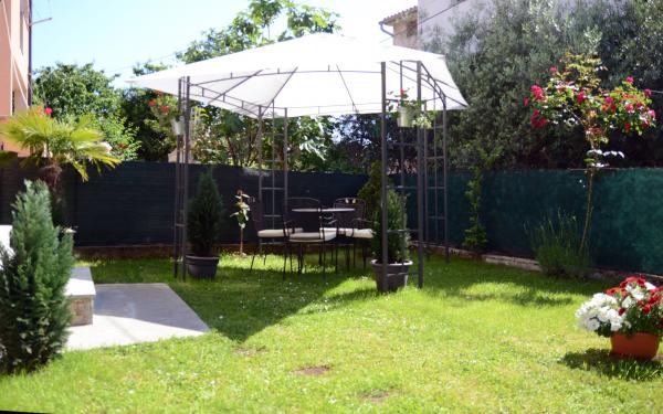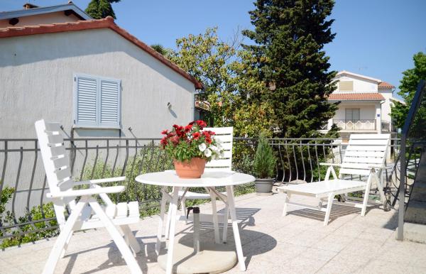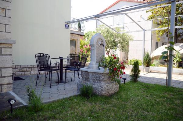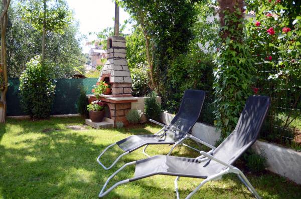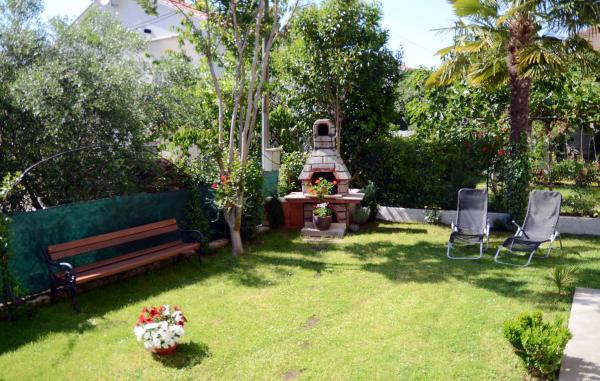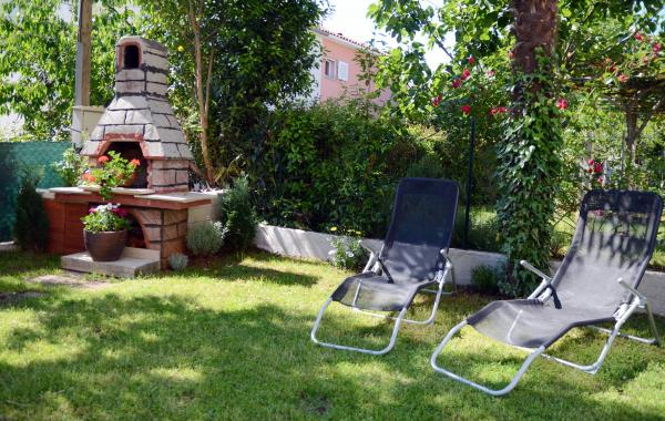 Kompletno i moderno opremljena samostojeća kuća za odmor u mirnom dijelu grada, okružena zelenilom, udaljena svega 500 m od mora i 900 m od centra grada. Kuća ima vrt i dvorište. U prizemlju je kuhinja, dnevni boravak, spavaća soba, wc, otvorena i zatvorena terasa. Na katu su dvije spavaće sobe sa terasama, mala soba, kupatilo i terasa za sunčanje sa ležaljkama. U vrtu ima gill i vrtni namještaj. Besplatni internet dostupan je u cijelom objektu. Kućni ljubimci su dobrodošli, uz prethodnu najavu.