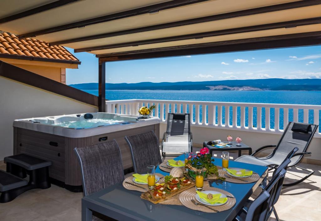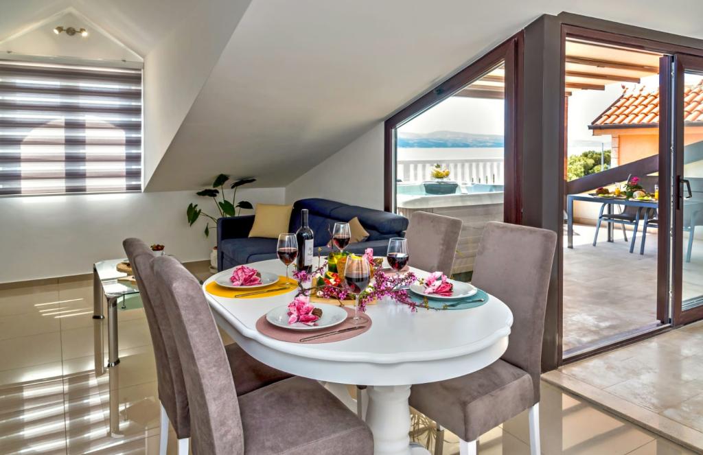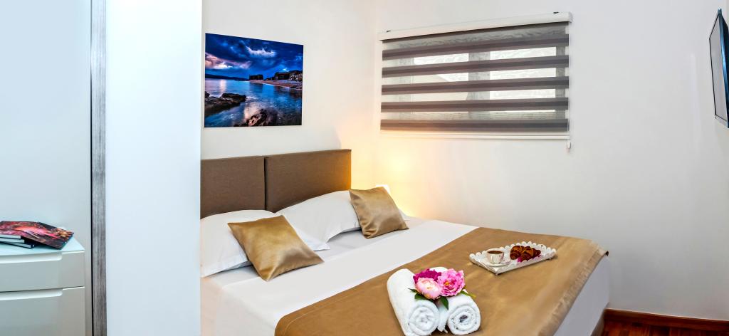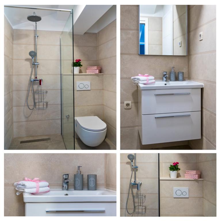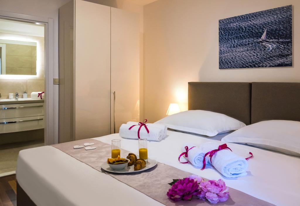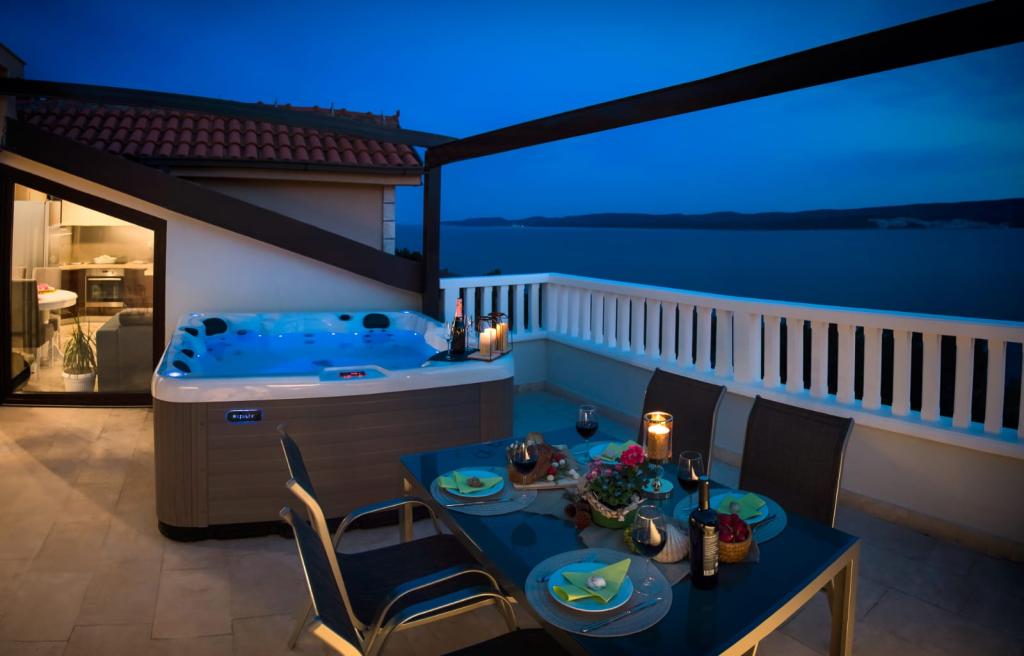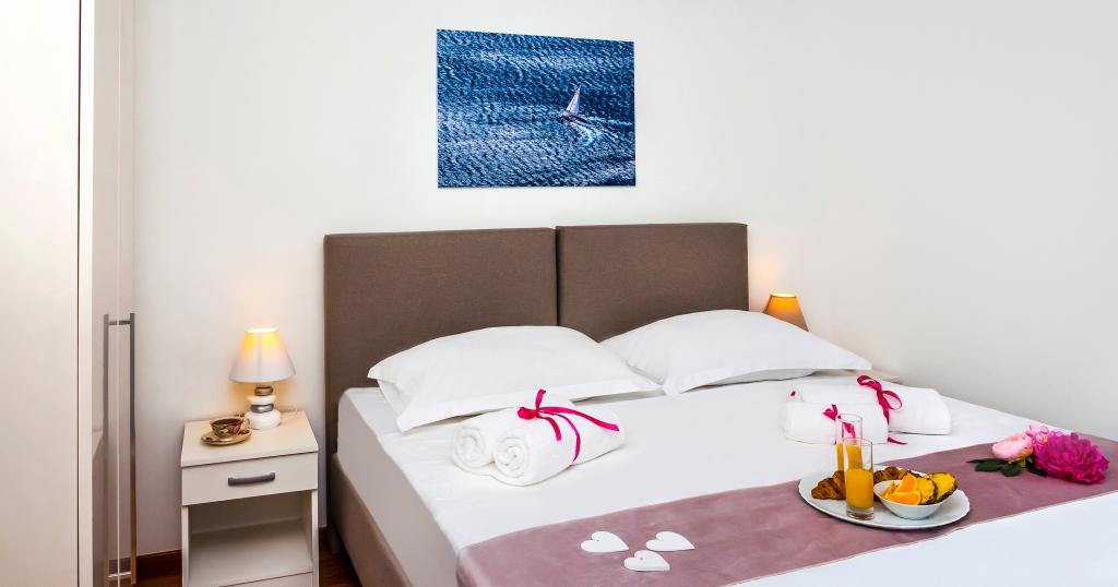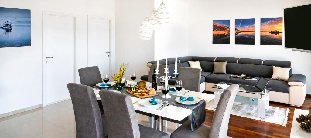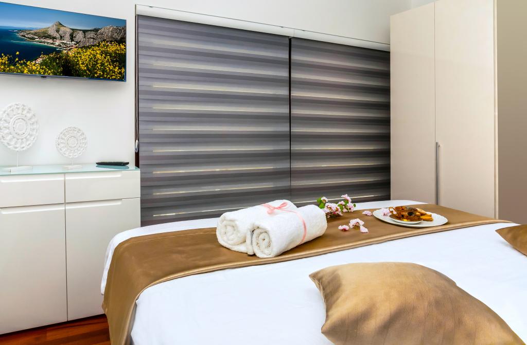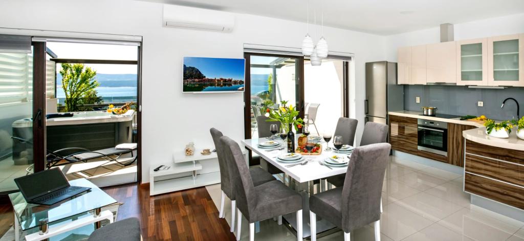 Objekt "Adria Croatica" ima 4 luksuzno opremljena apartmana s 4 zvjezdice, pogledom na more i besplatnim parkingom. Nalazi se 100 m od mora, a do plaže se ide pothodnikom koji se nalazi kraj objekta. Apartmani su kompletno i suvremeno opremljeni s kvalitetnim namještajem. Idealni su za duži boravak, dok ga hidromasažne kade ćine opuštajućim. Jedinice imaju 2 spavaće sobe, 2 kupaonice, kuhinju, dnevni boravak, blagavaonicu, terasu ili balkon. Opremljene su zvučno izoliranim sobama, klimom, besplatnim internetom, satelitskim programima,...