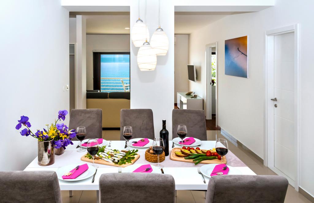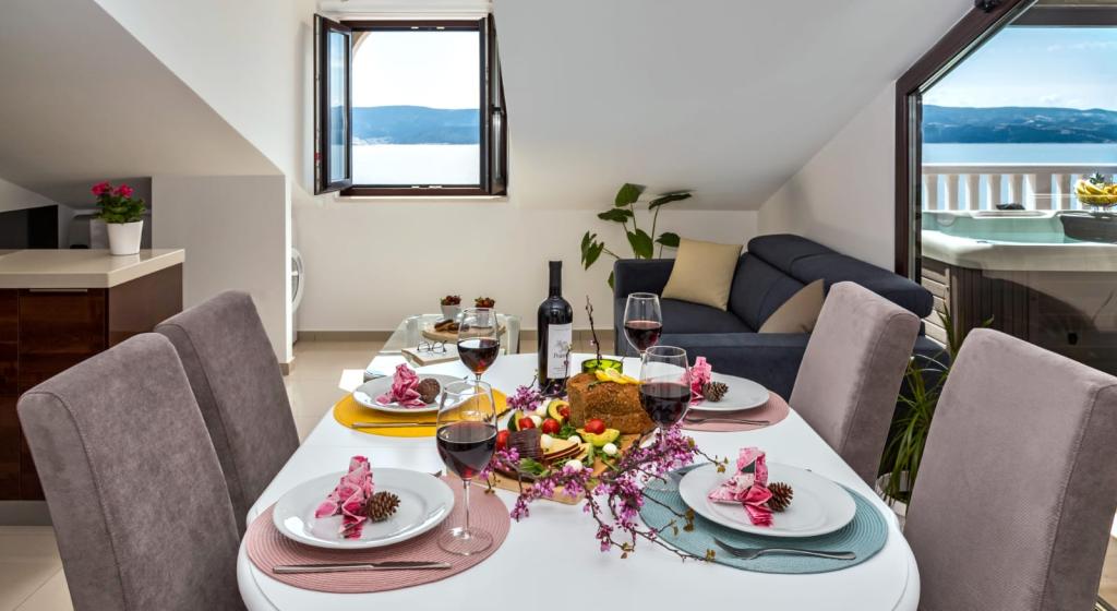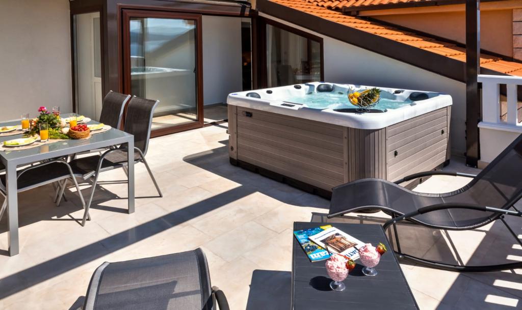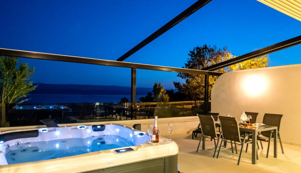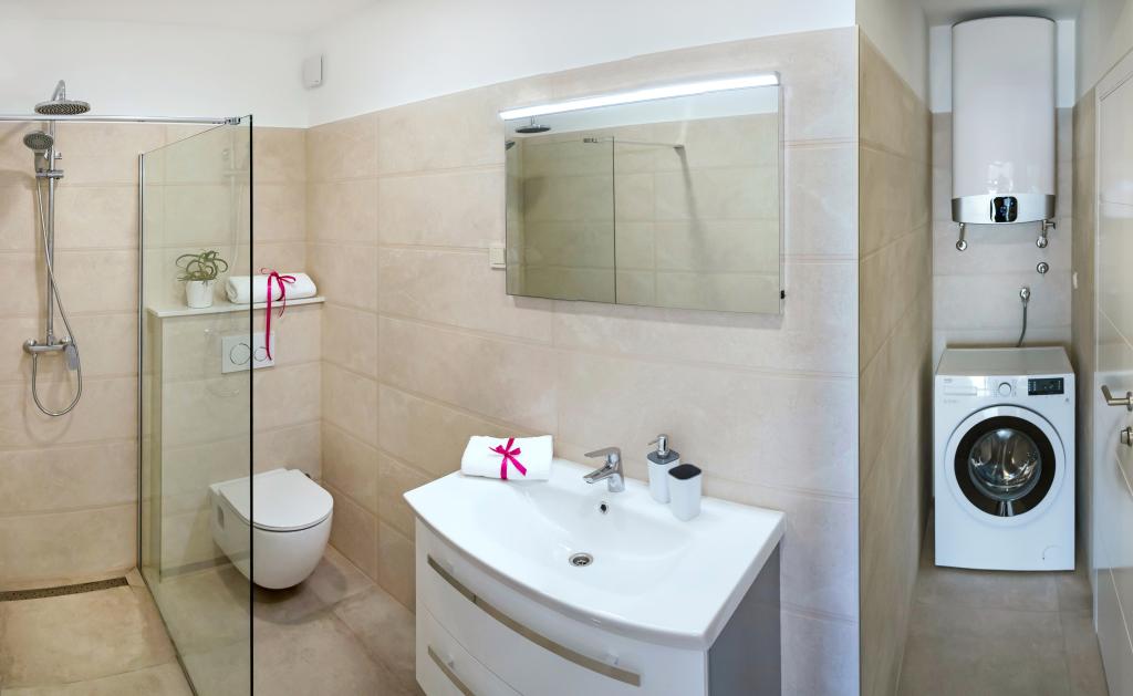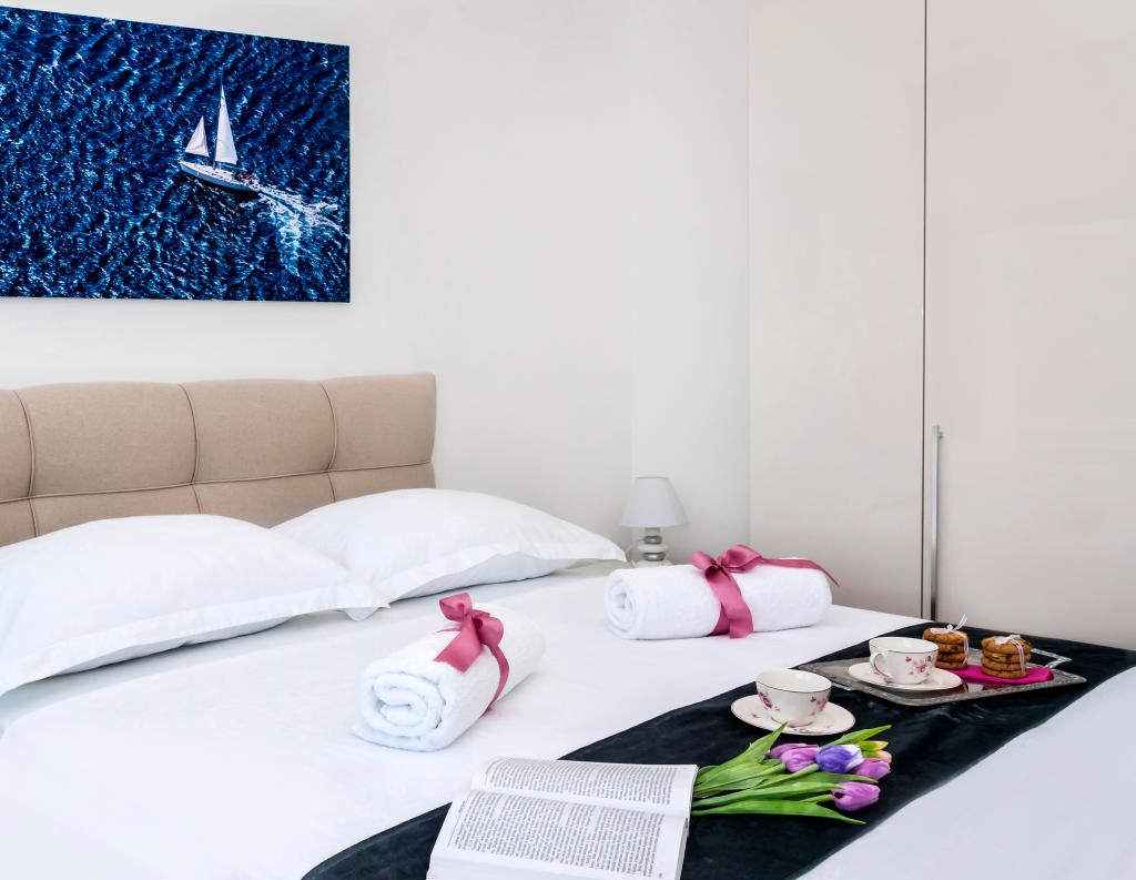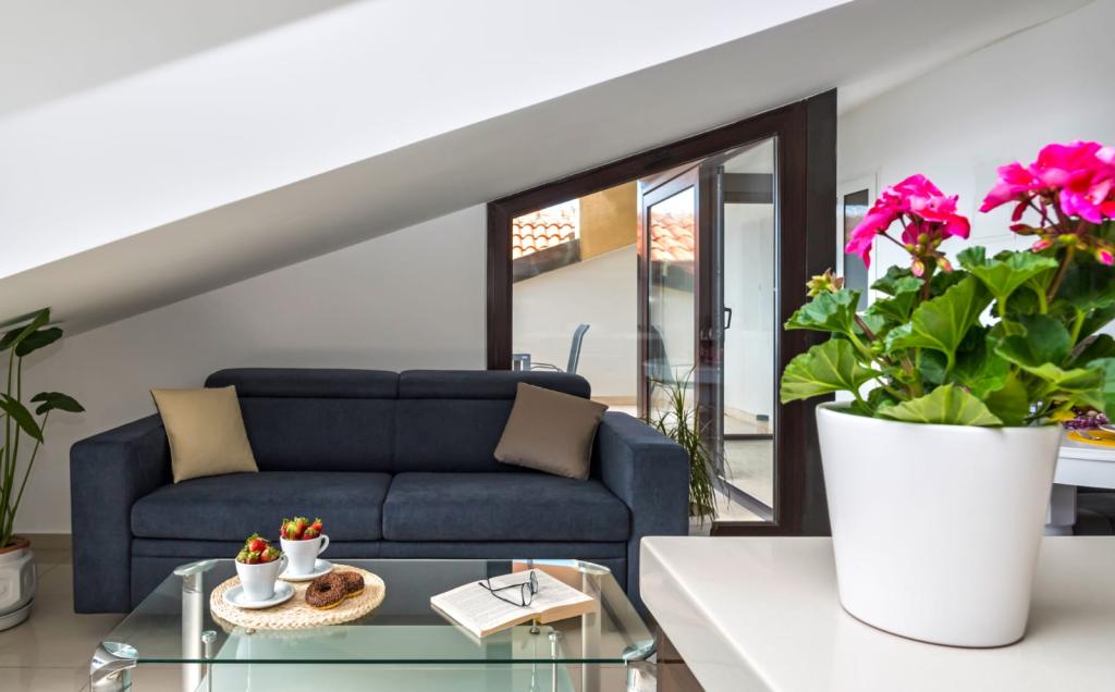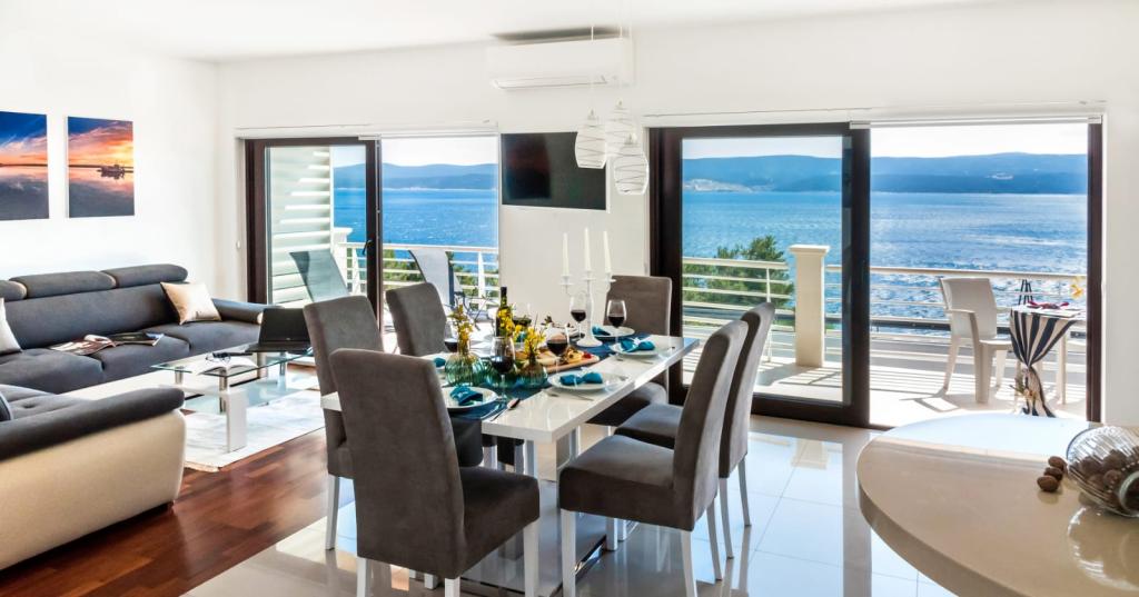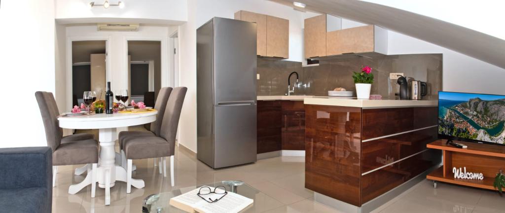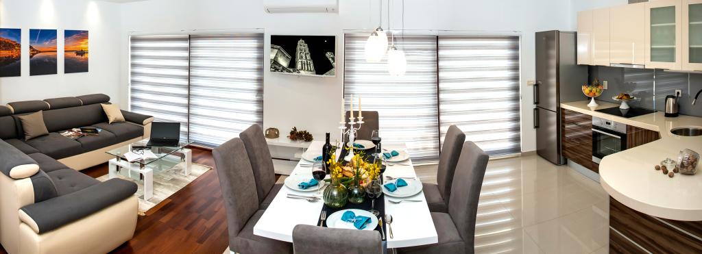 Objekt "Adria Croatica" ima 4 luksuzno opremljena apartmana s 4 zvjezdice, pogledom na more i besplatnim parkingom. Nalazi se 100 m od mora, a do plaže se ide pothodnikom koji se nalazi kraj objekta. Apartmani su kompletno i suvremeno opremljeni s kvalitetnim namještajem. Idealni su za duži boravak, dok ga hidromasažne kade ćine opuštajućim. Jedinice imaju 2 spavaće sobe, 2 kupaonice, kuhinju, dnevni boravak, blagavaonicu, terasu ili balkon. Opremljene su zvučno izoliranim sobama, klimom, besplatnim internetom, satelitskim programima,...