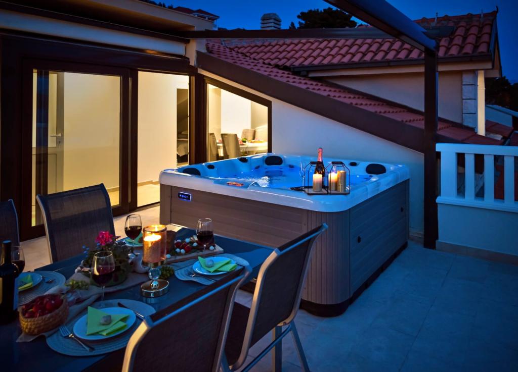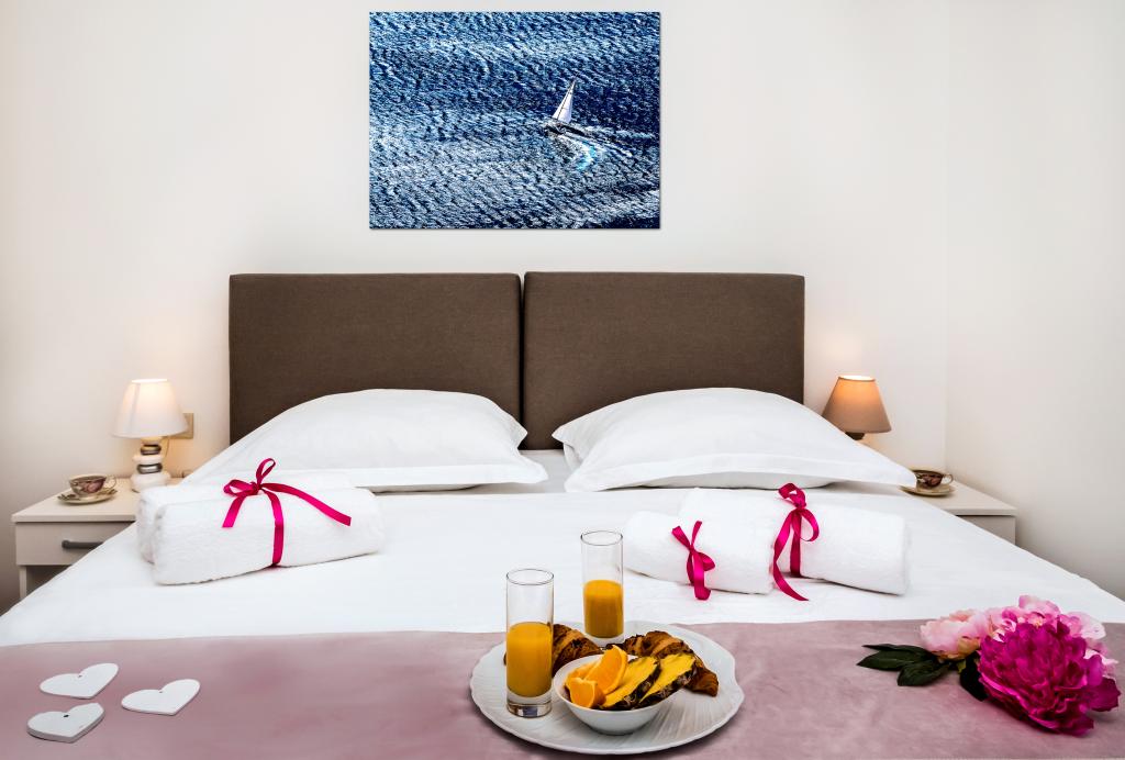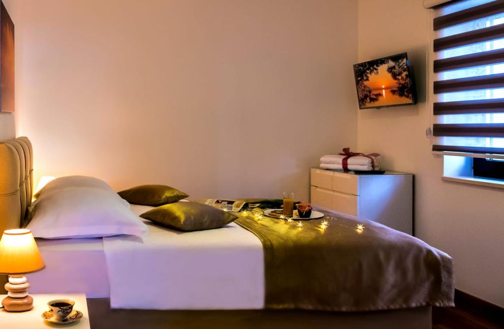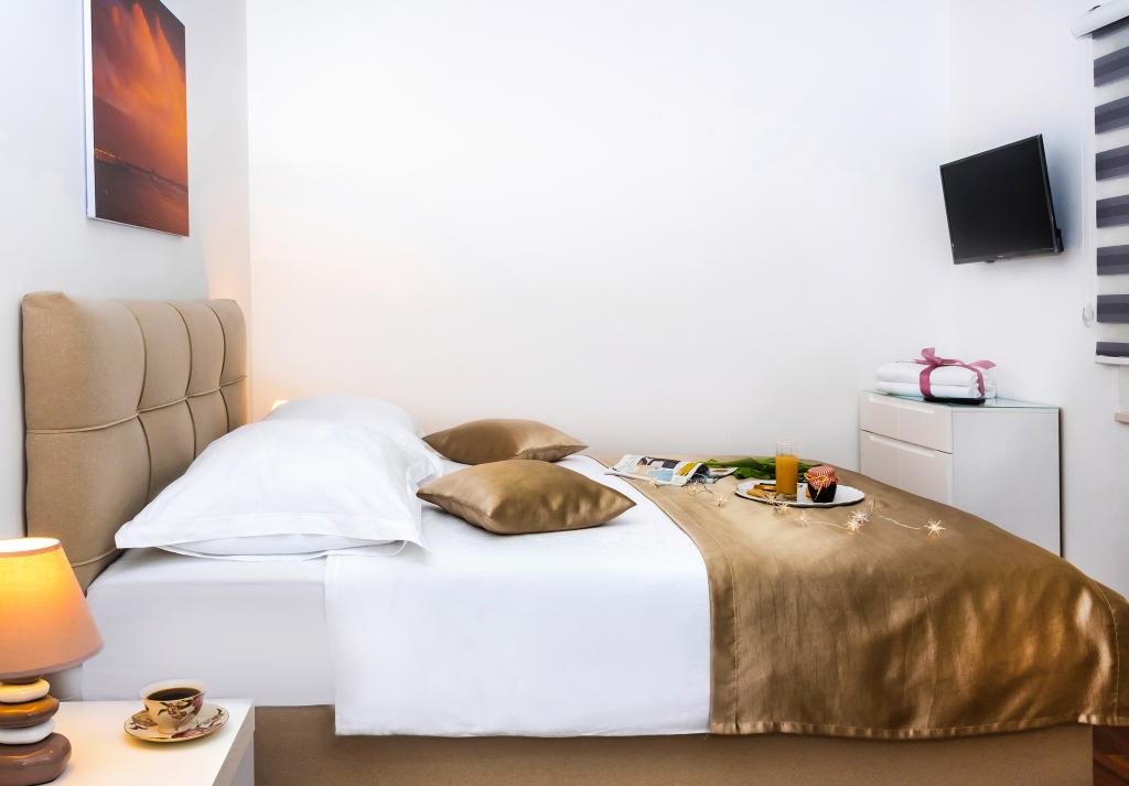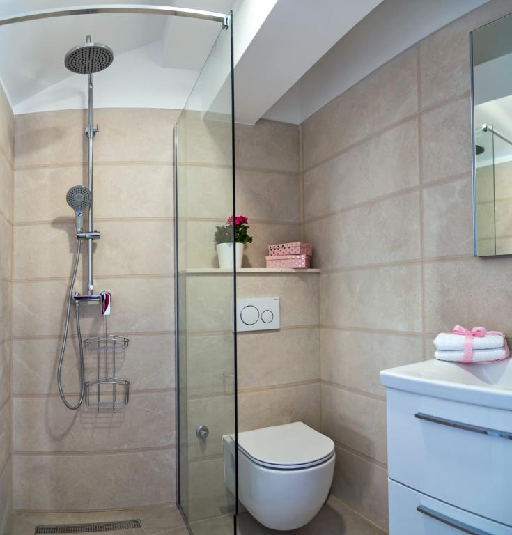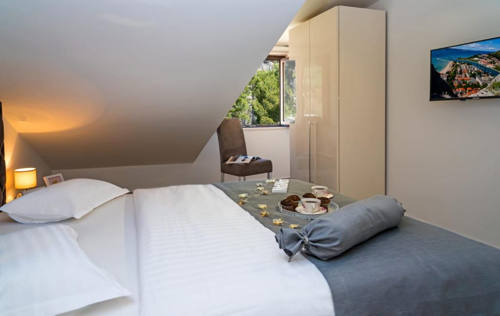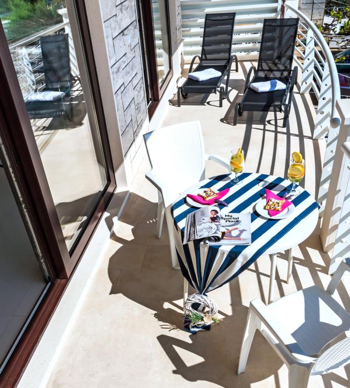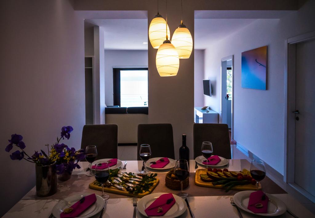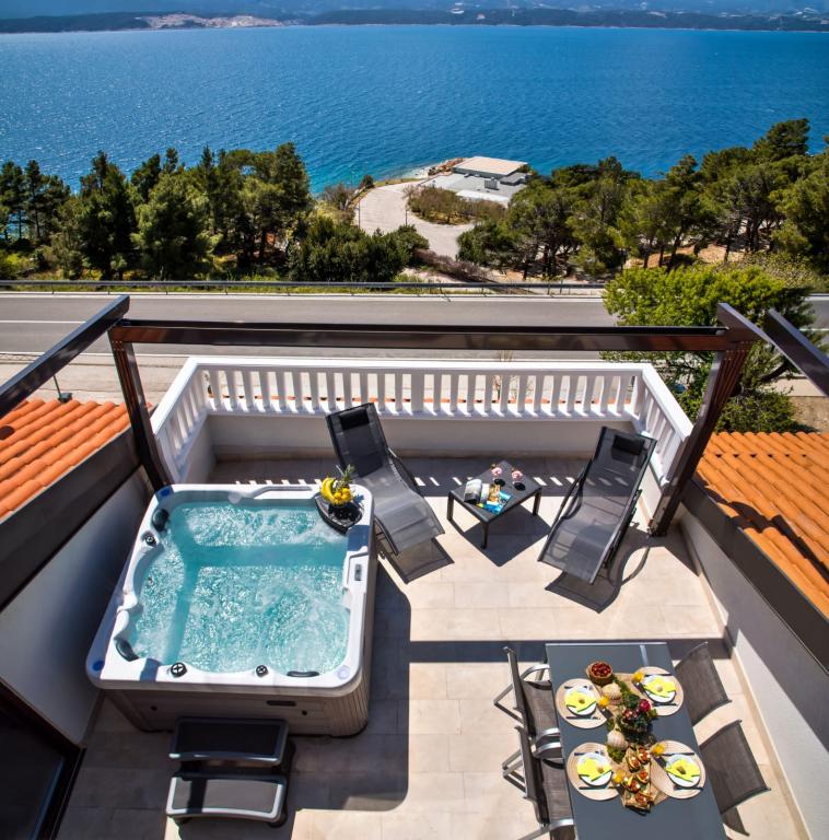 Objekt "Adria Croatica" ima 4 luksuzno opremljena apartmana s 4 zvjezdice, pogledom na more i besplatnim parkingom. Nalazi se 100 m od mora, a do plaže se ide pothodnikom koji se nalazi kraj objekta. Apartmani su kompletno i suvremeno opremljeni s kvalitetnim namještajem. Idealni su za duži boravak, dok ga hidromasažne kade ćine opuštajućim. Jedinice imaju 2 spavaće sobe, 2 kupaonice, kuhinju, dnevni boravak, blagavaonicu, terasu ili balkon. Opremljene su zvučno izoliranim sobama, klimom, besplatnim internetom, satelitskim programima,...