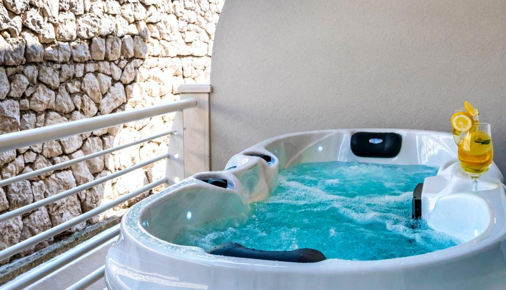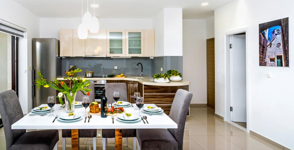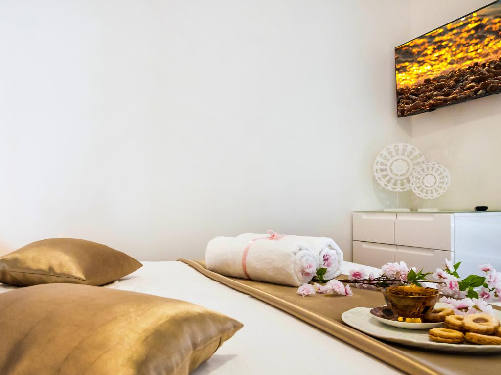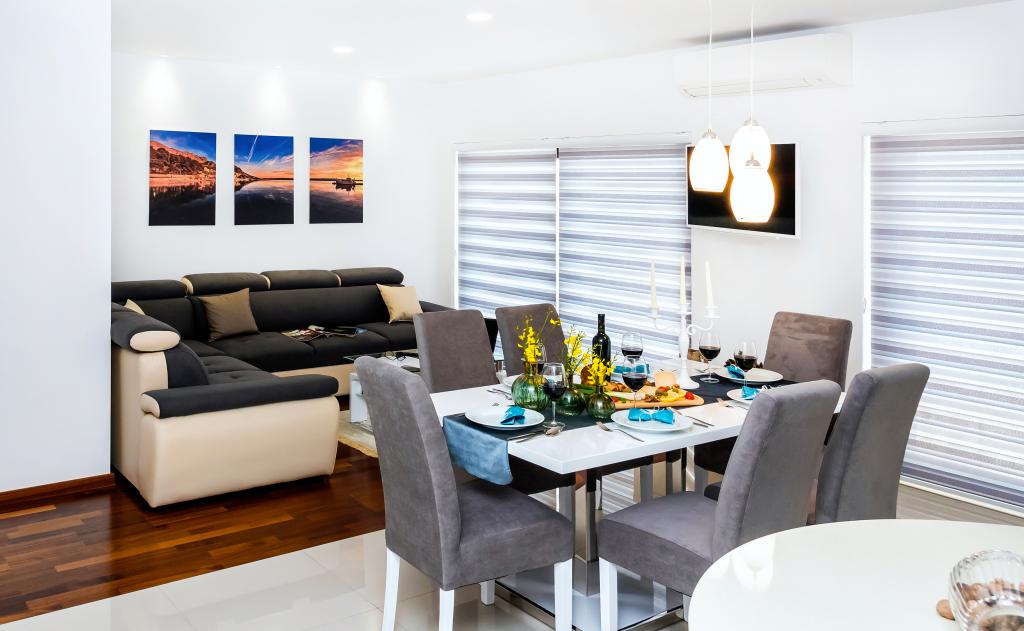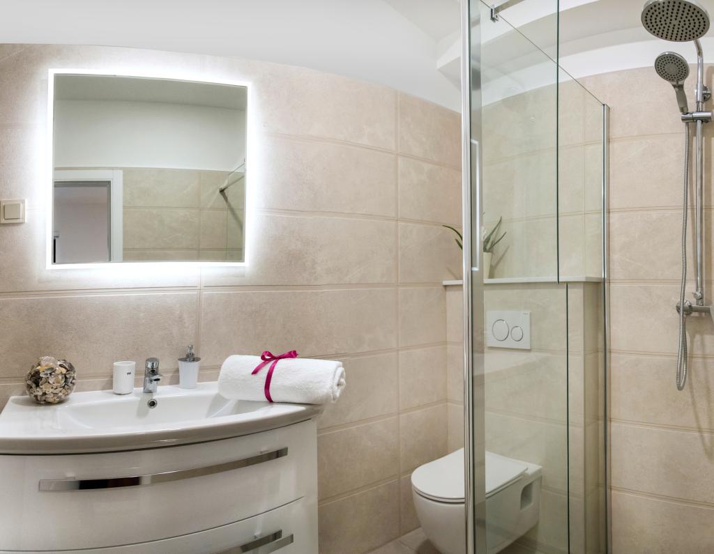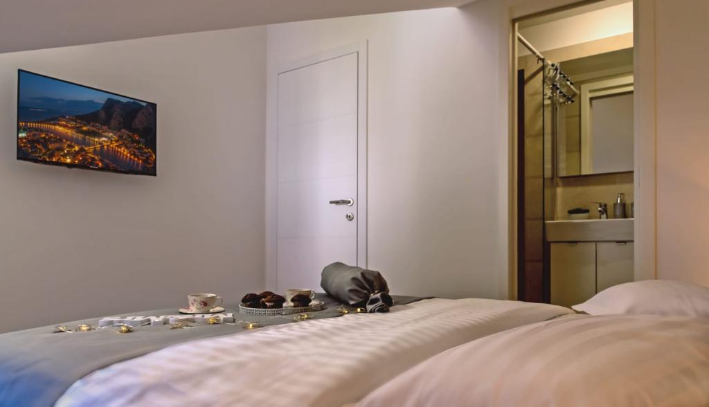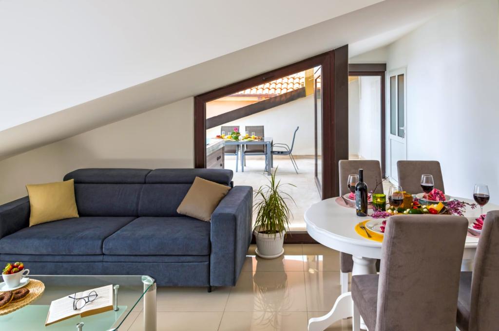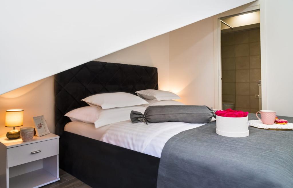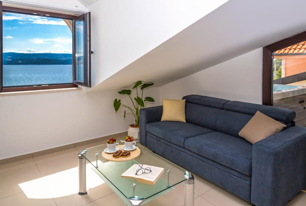 Objekt "Adria Croatica" ima 4 luksuzno opremljena apartmana s 4 zvjezdice, pogledom na more i besplatnim parkingom. Nalazi se 100 m od mora, a do plaže se ide pothodnikom koji se nalazi kraj objekta. Apartmani su kompletno i suvremeno opremljeni s kvalitetnim namještajem. Idealni su za duži boravak, dok ga hidromasažne kade ćine opuštajućim. Jedinice imaju 2 spavaće sobe, 2 kupaonice, kuhinju, dnevni boravak, blagavaonicu, terasu ili balkon. Opremljene su zvučno izoliranim sobama, klimom, besplatnim internetom, satelitskim programima,...