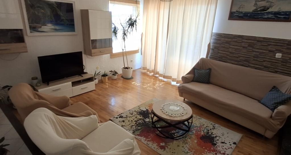 Apartman je odlican, velik i moderno.uredjen!! Ima preljep veliki balkon i divan pogleda na more! Gazde jako prijatni i ljubazni. Velik plus za cistocu apartmana. Jedino sa sazalit je naporan put s mora natrag u apartman. Inace sve za pet! Pozz