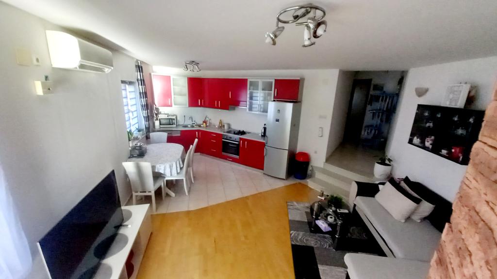 Apartman preporučuje, sve kao što je opisano (perilica suđa, pećnica, veliki hladnjak, bide). Zapanjujući pogled na more s balkonom i kuhinjom. U jednoj spavaćoj sobi nalazi se dodatni balkon s pogledom na more, te u drugom prozoru s pogledom na prekrasne planine. Na zemljištu je i bazen s prekrasnim pogledom na more i planine. U blizini plaže (prizemlje) je vrlo intiman, nije bilo puno ljudi - mala plaža šljunčana i mnoga mjesta kamenita / betonska i ono što je važno sjenovito. Vrlo lijep domaćin (Ivo pozdravljam vas i vaše obitelji) - korisno i pristojan. Jednog dana nam je donio tople kolačiće s punjenjem.