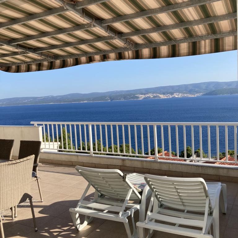 Bili smo s djecom u velvet penthouse apartmanu koji je ogroman, oduševilo nas je što jedna od spavaćih soba ima svoju odvojenu kupaonicu i bila je još jedna kupaona i mali toalet što je za veliku obitelj odlično. Pogled s terase na Brač i otoke oduzima dah zaista, nevjerojatan apartman odlično opremljen svime što vam treba. Najviše smo boravili na terasi jer ima ljuljačku i ležaljke i jedva se čekamo vratiti dogodine, preporučujemo od srca svima koji se žele dobro odmoriti i uživati.