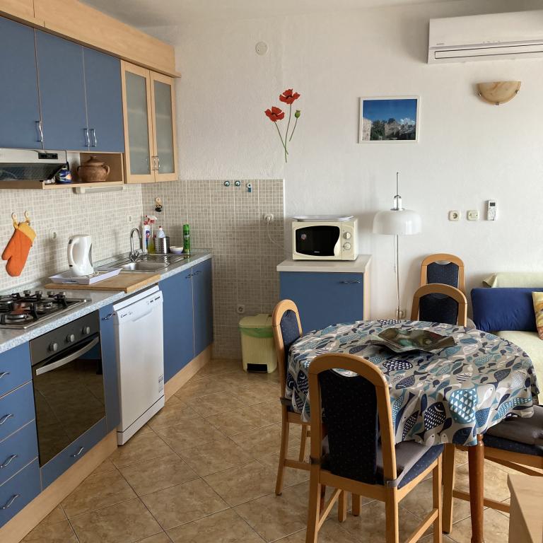 Apartman je novi i sve je čisto. Imali smo sve što je potrebno, uključujući ručnike, posteljinu i kuhinjsku opremu. Prekrasan pogled s balkona. Naš sin se volio igrati u dvorištu. Neno, naš domaćin bio je na usluzi, vozio nas je brodom na otoke i ponudio je domaći med i ribu. Ponovno ću doći i rado preporučiti obiteljima s djecom.