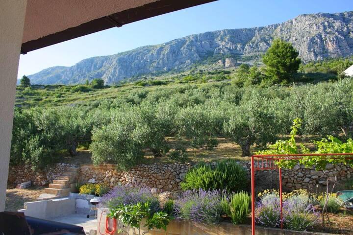 Idealno za one koji vole biti izolirani od uobičajene ljetne buke i gužve, ali ipak nedaleko od mora. Svaki apartman ima svoj ulaz i potpunu privatnost. Pogled na more sa svih balkona je za pamćenje. Udobno je, opremljeno sa svim sadržajima i jako čisto, novo i lijepo. Velvet penthouse, Big Blue i Orange su tri novoizgrađena, prostrana i udobna apartmana s pogledom na more i otoke, sa prirodnim hladom vinove loze i smokava. Odaberite najdražu boju, dođite i odmorite se kao nikada! Kuća ima veliku okućnicu, vrt i maslinik te kamin. Kuća se nalazi u mirnom predjelu mjesta okružena maslinikom. U krugu kuće se nalaze 2 kamena komina za grill, veliko dvorište i parking. Instagram: apartmani.dragana U vrtu kuće možete pronaći i sami ubrati aromatična bilja poput ružmarina i kadulje, lavande, razne začine i slušati pčelice koje oko njih plešu. Miriše Dalmacija. Instagram: apartmani.dragana