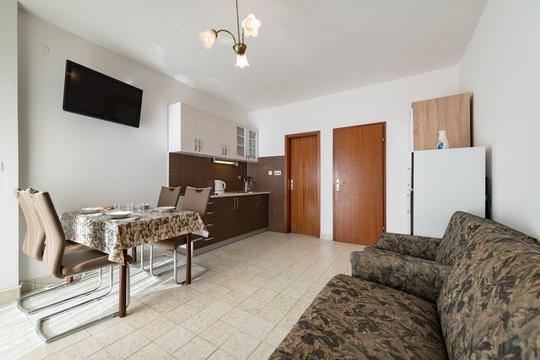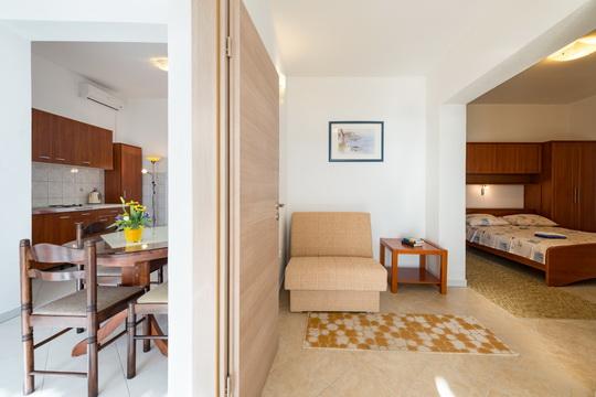 Pročitaj više Smještajne jediniceU cijeni najma apartmana sadržana je boravišna pristojba, korištenje struje i vode, posteljina, ručnici, suđe i posuđe, uoptreba klima uređaja do 5 sati, internet, parking i završno čišćenje. Uobičajno je u dolasku ulazak u apartman od 14 sati na dalje, a u odlasku izlazak iz apartmana do 10 sati.