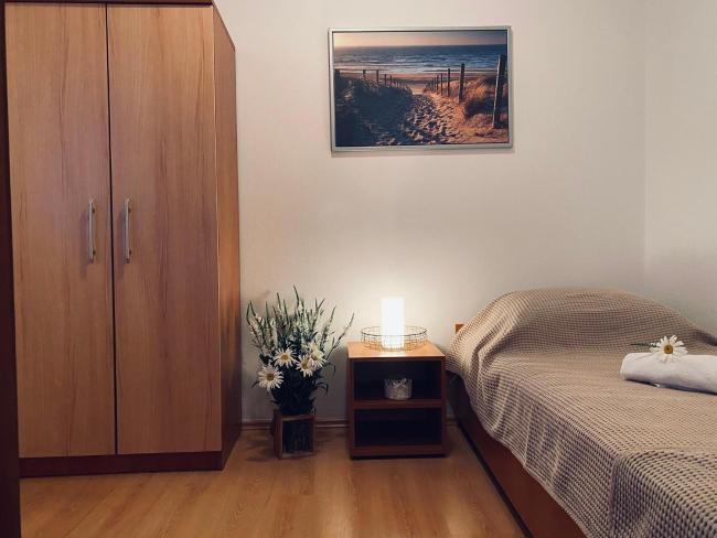 Kompletno opremljen apartman ,u mirnom predjelu .Smješten na 8 minuta hoda ( 400m cca ) od mora ,te prekrasne pješčane plaze. Apartman se nalazi 20 km od centra Zadra. U sklopu apartmana nalazi se vanjski tuš i vlastita terasa na korištenje ,te mogućnost korištenja grila. U samom mjestu se nalaze trgovina, Beach bar , igralište za djecu , teretana na otvorenome, odbojkaški i nogometni teren.