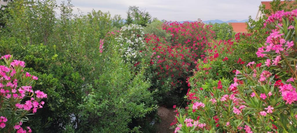 Lijepi apartmani u zelenilu, idealno za sve željne odmora u prirodi. Lovori, oleandri, ružmarin, i masline, poželjet će Vam svojim izgledom i mirisom - dobrodošlicu i uljepšati boravak. Moguće je koristiti vanjski tuš u dvorištu, kao i grill. Naši gosti su dugi niz godina - internacionalni. Duge pješčane plaže, idealne su za sunčanje, rekreaciju, ali i večernje šetnje. Blizina tri Nacionalna parka, prekrasnog grada Zadra, kao i atraktivnog TN Zatona sa mnogo mogućnosti za sport, zabavu, animaciju, i gastro-kulinarske užitke. Znamenita povijesna jezgra Kraljevskog Nina, povezana je dugom pješčanom plažom, a i biciklističkom stazom uz regionalnu cestu. Mogućnost vožnje čamcem. Dobro nam došli, svi mali i veliki, dragi nam gosti! Posebna akcija u svibnju, lipnju, rujnu i listopadu!