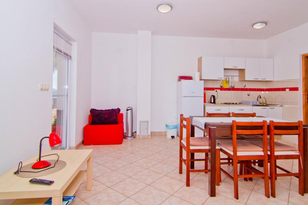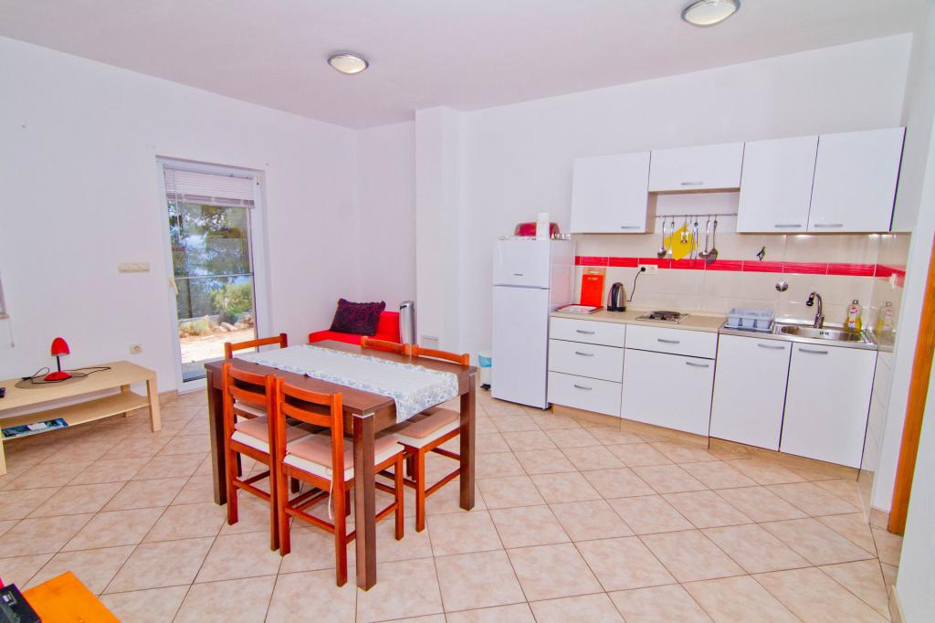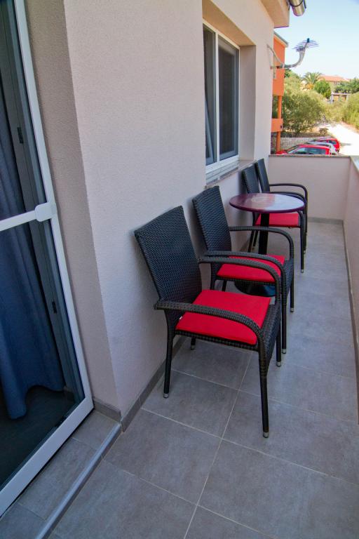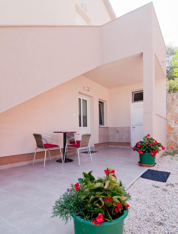 Apartmani smješteni u novom objektu u mirnoj ulici s lijepim pogledom na more, otoke i Velebit. Svaki apartman ima zasebni ulaz. Apartmani su kompletno opremljeni za ugodno ljetovanje i imaju osigurano jedno parkirno mjesto u dvorištu. Opremljeni su TV aparatom i bežičnom mrežom (Wi-Fi). U cijenu najma uključena je posteljina i kupaonski ručnici. Osigurano korištenje roštilja u dvorištu. Apartman 4, klimatiziran, površine 45 m2, nalazi se na katu, ima bračnu i dječju spavaću sobu s po dva ležaja. Balkon je površine 6 m2 i terasa 9 m2. Kuhinja spojena s blagovaonom opremljena je osnovnim kuhinjskim aparatima, priborom za kuhanje i posluživanje. Apartman 2+2, klimatiziran, površine 45 m2, nalazi se u prizemlju i ima bračnu sobu i mogućnost dvokrevetnog ležaja u dnevnom boravku. Terasa površine 9 m2. Kuhinja spojena s blagovaonom opremljena je osnovnim kuhinjskim aparatima, priborom za kuhanje i posluživanje. Kućni ljubimci nisu dozvoljeni
