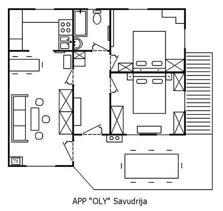 Suvremeno opremljeni apartmani u privatnoj kući okruženoj s vrtom punog zelenila i velikim privatnim nadkrivenim parkingom. Apartman OLY-1 nalazi se na prvom katu, a apartman OLY-2 u prizemlju. Na prozorima se nalaze zaštitne mreže, koje štite od kukaca. Kuća je samo 300 metara udaljena od mora i plaže. Center naselja s trgovinama, poštom, bankom, restauranima, pizzerijama...udaljeno je svega 10 minuta hoda. Odmorite se i provedite ugodan boravak u mirnom okruženju apartmana OLY.