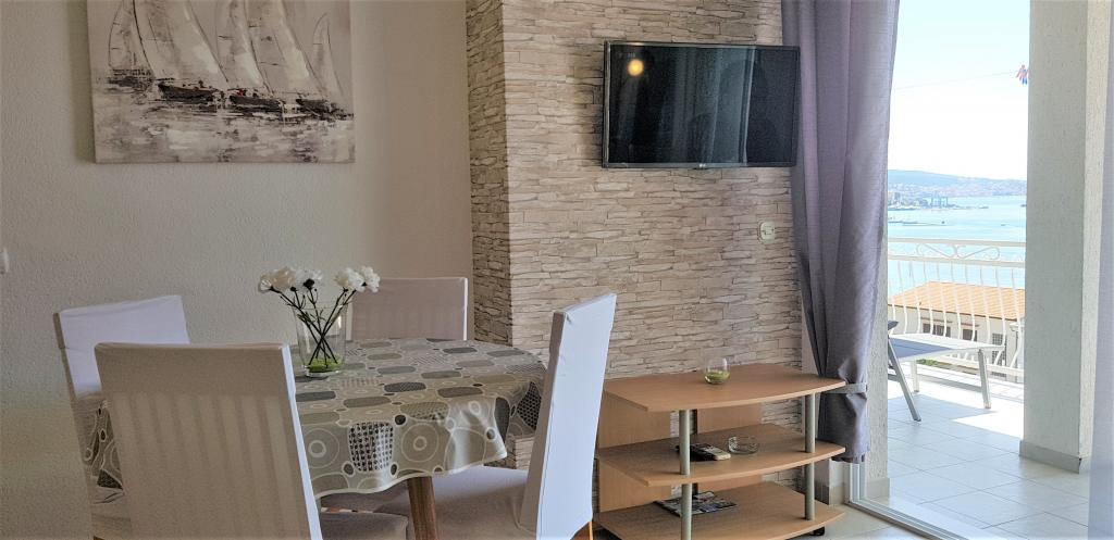 Adriatic Sea View Apartments smješteni su u srcu Dalmacije, u malom ribarskom mjestu Seget Donji s dugom turističkom tradicijom, udaljeno 2 km od Unesco-va grada Trogira i 22 km od Splita i Dioklecijanove palače. Raspolažemo s pet ugodno namještenih i lijepo opremljenih apartmana, prilagođenih potrebama gostiju. Odlična pozicija objekta, samo 100 metara do mora - plaže! Zahvaljujući odličnom položaju apartmana u blizini su mnogobrojni zabavni i rekreativni sadržaji, kafići i restorani. Svi apartmani imaju prekrasan pogled na more, uredni su, čisti i prozračni s puno dnevnog svjetla. U okviru objekta za svaki apartman dostupna je terasa ili balkon gdje se možete opustiti uz prvu jutarnju kavu i u tople ljetne večeri s prekrasnim pogledom na mjesečinom obasjano more. Važno: Svaki apartman ima zaseban ulaz - nema zajedničkih prostorija koje dijelite s drugim gostima. Također provodimo dodatne sigurnosne i higijenske mjere.