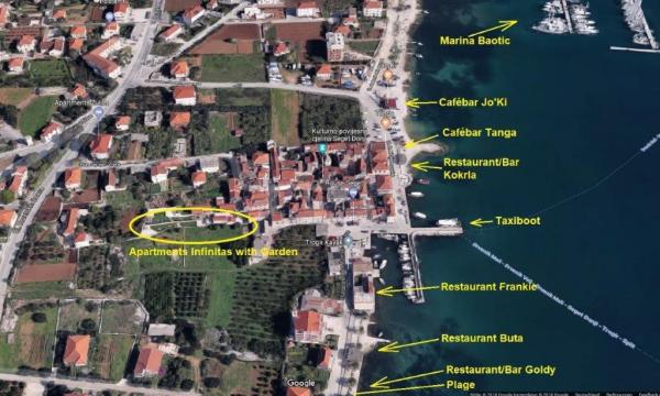 Apartmani Infinitas su smješteni u jednom od najljepših dijelova Dalmacije i samo 2 km od povijesnog grada TROGIR. Klimatizirani apartmani nalaze se usred gradića Donji Seget, samo 150 metara od fine šljunčane plaže. WiFi je dostupan svim gostima besplatno. Svaki apartman ima vlastiti privatni pristup i opremljen je sa Televizijom ravnog ekrana. Toaletne potrepštine su besplatno na raspolaganju gostima. Svi gosti imaju pristup prekrasnom vrtu s roštiljem i ležaljkama. To je mala udobna oaza u kojoj se gosti mogu odmoriti i opustiti uz prekrasan pogled na more i planine. Ostale aktivnosti kao što su biciklizam, jedrenje ili vožnje motorne jahte, posjete okolnih otoka ili ribolov, ili se samo opustiti uz čašu vina u vrtu, u bilo koje vrijeme su moguče.