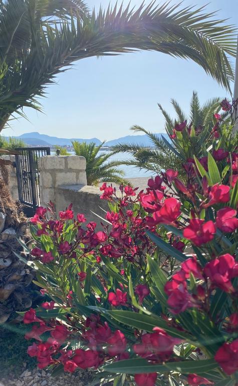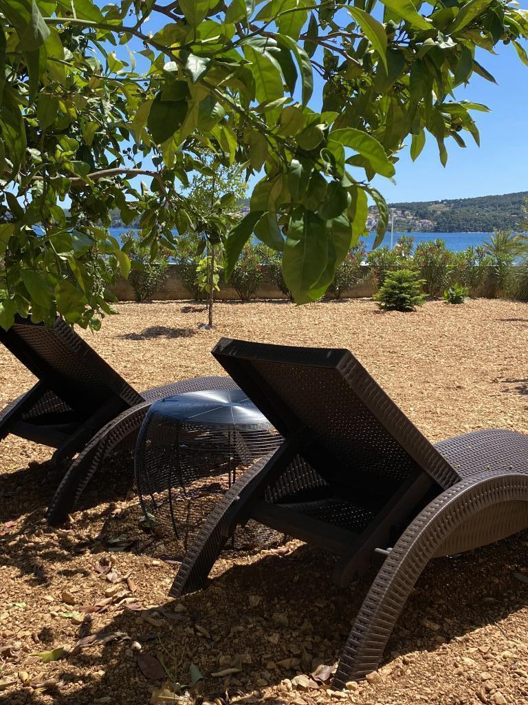 Kompletno opremljen apartman u mirnom predjelu. Smješten prvi red do mora, 10 m do plaže. Apartman se nalazi 20 min hoda do centra i 40 min hoda do grada Trogira. U blizini se nalazi restoran i caffe bar.