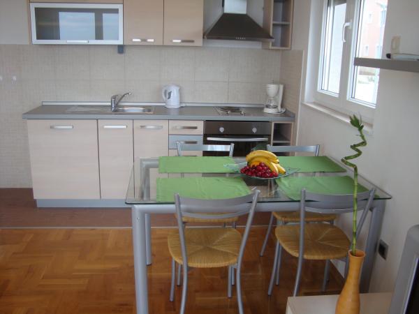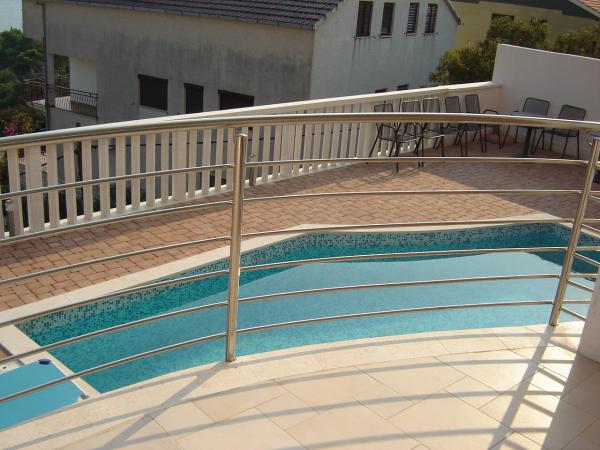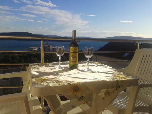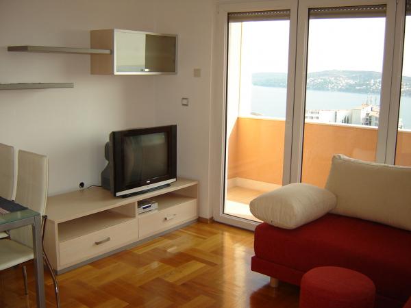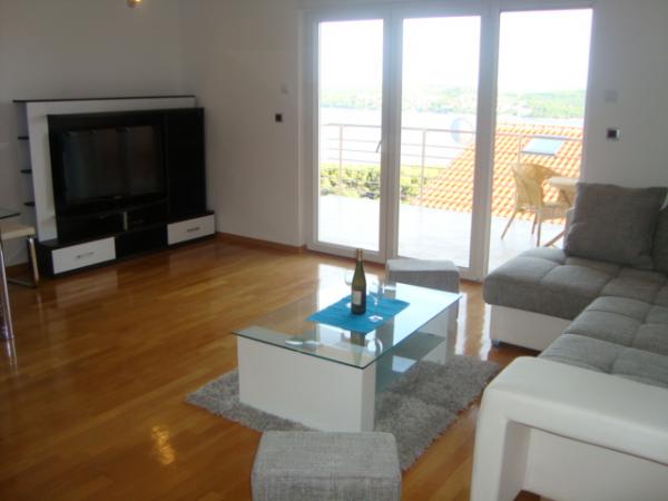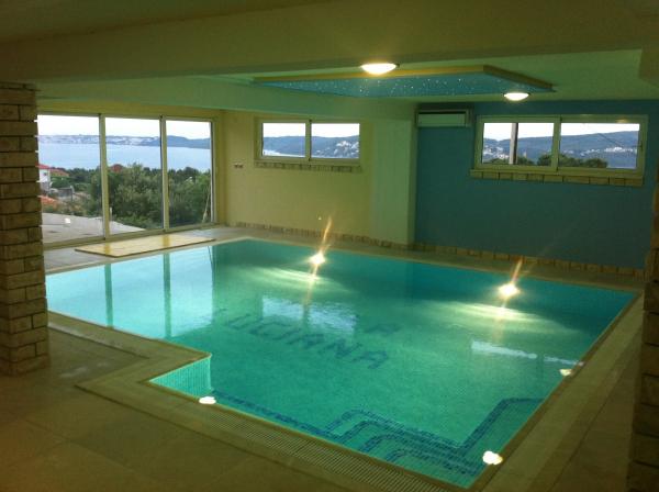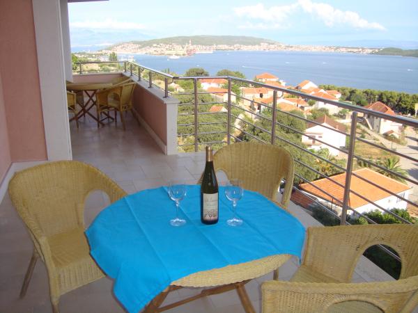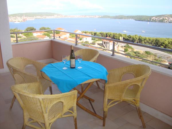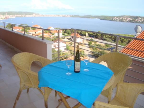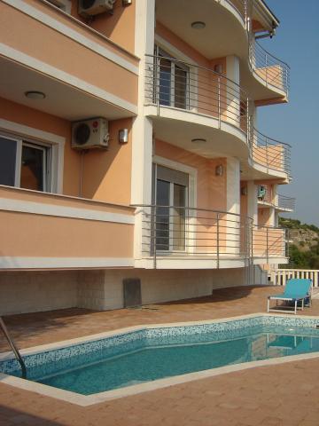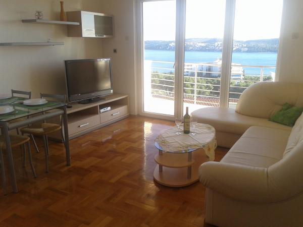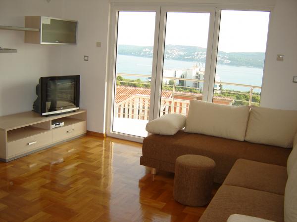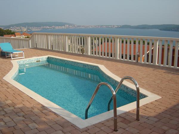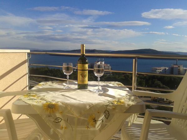 Novo izgrađeni apartmani, kompletno uređeni s prekrasnim pogledom na more i otoke. Objekt ima 14 apartmana, vanjski i unutrašnji bazen, restoran za doručak, recepciju, caffe bar i dr. Nalazimo se 400 m od plaže. U blizini se nalaze sportski sadržaji: tenis, minigolf, odbojka na pjesku, jet ski, jedrenje, jahanje i dr. . (200-300m). Autobusna stanica je udaljena 150m, lokalana brodska 400m. Marina za brodove je udaljena 1, 5 km i zračna luka 5km. Nacionalni park Plitvička jezera su udaljena 45km, Unescov Trogir 1, 5 km, Dioklecijanov Split 25 km.