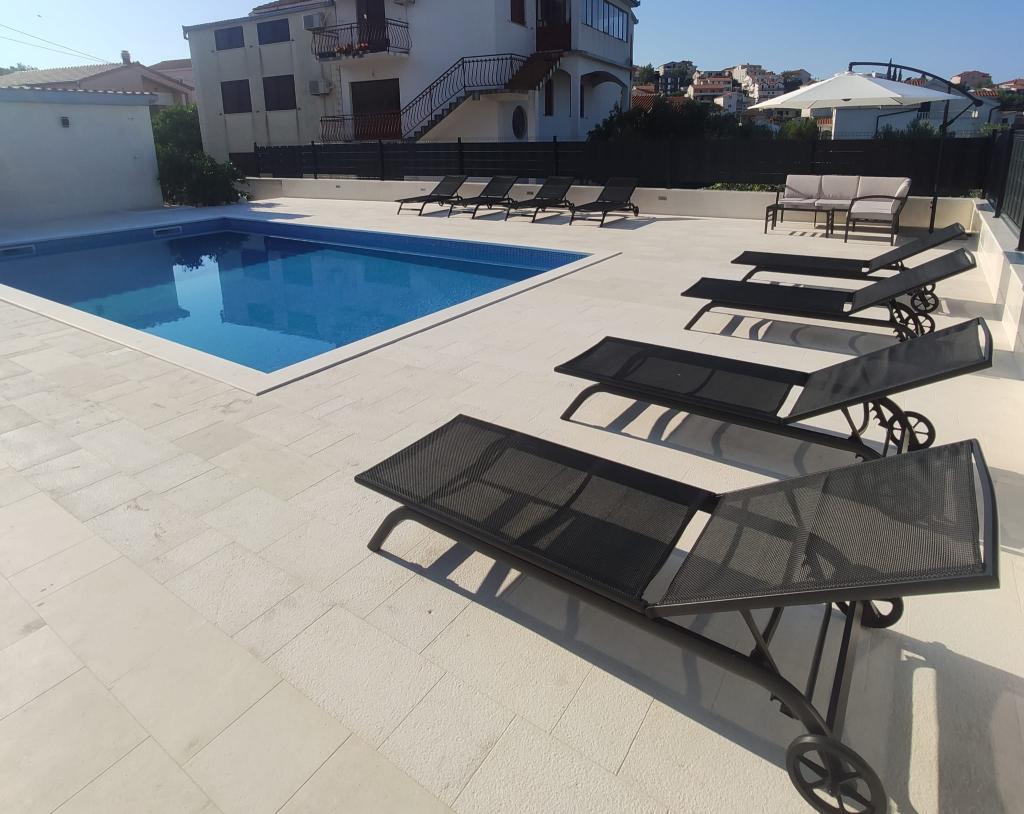 Novouređeni apartmani s bazenom dimenzija 9x5 metara, prostrano sunčalište sa ležaljkama i kutnom garniturom, u sklopu bazena je i toalet , u prekrasnom dalmatinskom mjestu Seget Vranjica na samo 5 minuta hoda do plaže. U krugu od 200 m se nalaze trgovina, restorani, crkva, sportski tereni itd. Drevni UNESCO grad Trogir je od nas udaljen svega 4 km, koji je povezan brodskom linijom Seget Vranjica - Trogir, zračna luka udaljena je 10 km, a grad Split 30 km.
