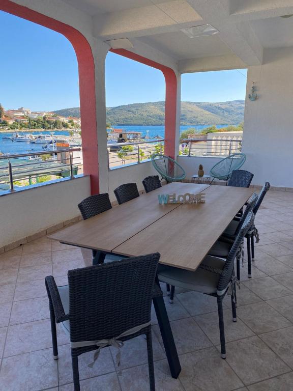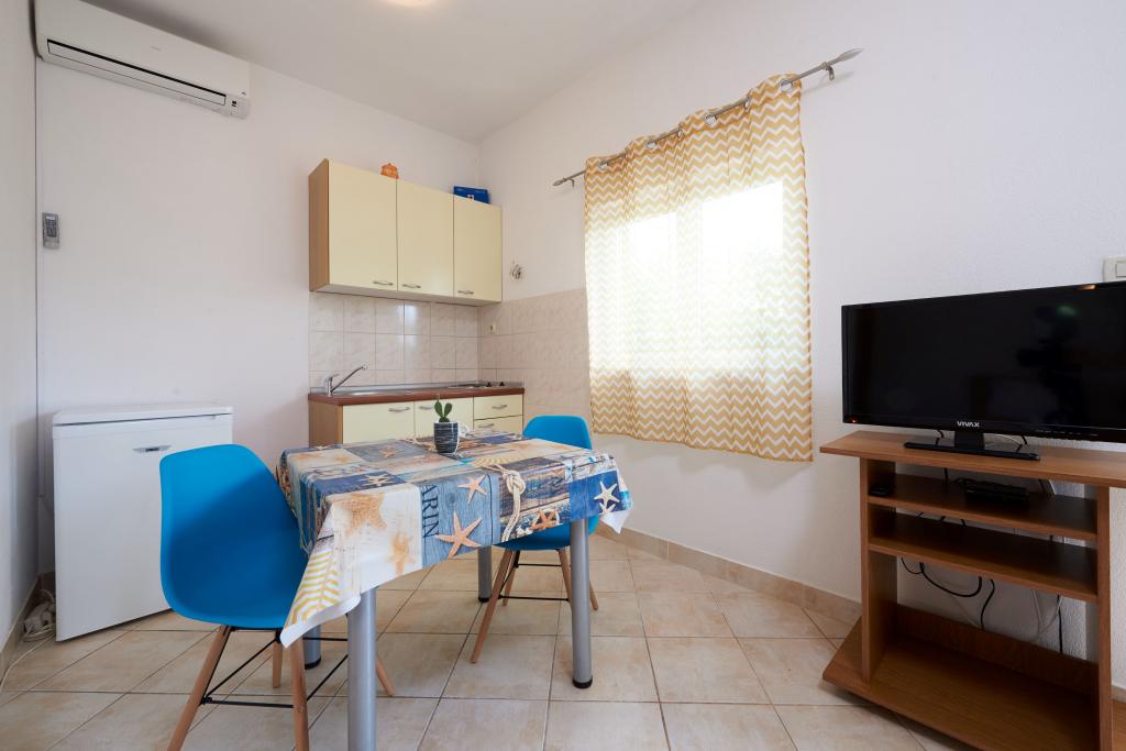 Kompletno uređeni apartmani u centru malog dalmatinskog mjesta, Seget Vranjice, prvi red do mora udaljeni samo 30m od plaže te svega 5 km od Trogira(grad pod zaštitom Unesco-a) idealan su odabir za obitelji sa djecom. Studio apartmani se nalaze u prizemlju, A8 i A4(a) su na prvom katu dok je A4(b) na drugom katu. Na samo 5 minuta hoda nalaze se trgovina i nekoliko retorana gdje možete uživati najboljim dalmatinskim specijalitetima. Sportski tereni za različite aktivnosti također su blizu, na samo10 minuta hoda. Ukoliko želite brodom posjetiti Trogir, Split ili neki od obližnjih otoka brodsko stajalište je samo nekoliko minuta udaljeno od objekta. Ispred kuće nalazi se vrt u kojem se djeca mogu bezbrižno igrati. U dvorištu iza kuće nalazi se roštilj koji Vam je na raspolaganju. Parking je također osiguran za sve goste apartmana.