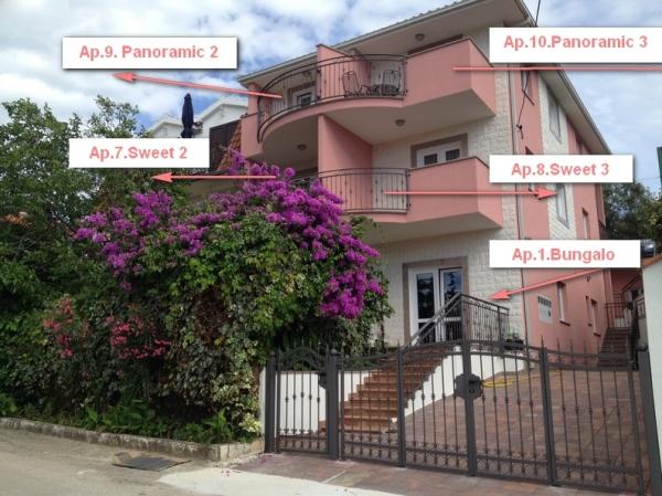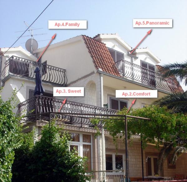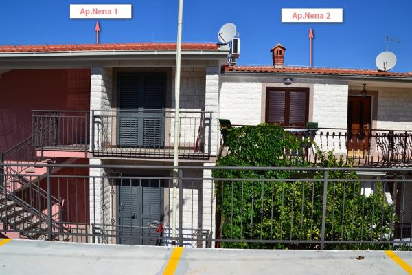 Apartmani Nena A i B nalaze se u malom turističkom mjestu Seget Vranjica, koje je udaljen oko 4 km od Trogira. U kućama A i B koje su spojene kao dvojni objekt, nalazi se 10 apartmana koji su udaljeni 100 m od mora. Plaže su udaljene 150-200 m od apartmana, šljunčane, stjenovite, ali i prilagođene za djecu. Svi apartmani imaju balkon ili terasu s pogledom na more, osim Ap. 6 koji jedini nema pogled na more. Na udaljenosti 20 m od apartmana nalazi se market s namirnicama (voće i povrće, meso, osnovne namirnice). Iz mjesta polazi brodica nekoliko puta u donu i noću do Hotela Medena (2 km) i do Trogira (4km). Uz svaki apartman gost dobiva u cijeni smještaja privatni parking, a veći apartmani parking za 2 automobila. U cijenu smještaja uključen je: smještaj u apartman, klimatizacija, turistička taksa, internet i WiFI, privatni parking, kompletna posteljina i po dva ručnika za apartman po osobi. Posteljina i ručnici se mijenjaju svakih 7 dana.