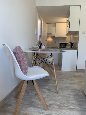 Prekrasno i ugodno iskustvo od same rezervacije do preuzimanja i boravka u apartmanu! Apartman sadrži sve potrebno, čak i više od toga (npr. klima uređaj, mikrovalna, TV). Na samom ulazu se nalazi mala kuhinjica koja sadrži sve potrebno i iz koje se ulazi u sobu gdje se spava. Krevet je vrlo udoban, mjesta je dovoljno za sve stvari. Kupaona, kao i ostatak prostora, nas je dočekala vrlo uredna i čista. Iz sobe se izađe na terasu koja ima zadivljujuć pogled, bilo ujutro, bilo u podne ili navečer. Budite se uz prekrasan osjećaj mira, tišine i plavetnila mora. U blizini apartmana nalaze se crkva, pekara, trgovina i plaža koja se proteže cijelom dužinom šetnice! Čitavom šetnicom možete pronaći restorane, kućice za kojekakve izlete i slično. U blizini mjesta nalaze se Trogir, Marina, otoci Drvenik, Šolta, Čiovo i brojni drugi. Domaćini su jedni vrlo ljubazni, pristupačni i ugodni ljudi! Bilo nam je iznimno zadovoljstvo biti njihovim gostima! Osjećate se kao kod kuće! Kako ne bismo više duljili jer bismo mogli još puno toga pozitivnoga napisati, ako želite odmor za dušu i tijelo, u Plavoj Laguni rezervirajte ljeto cijelo! :)