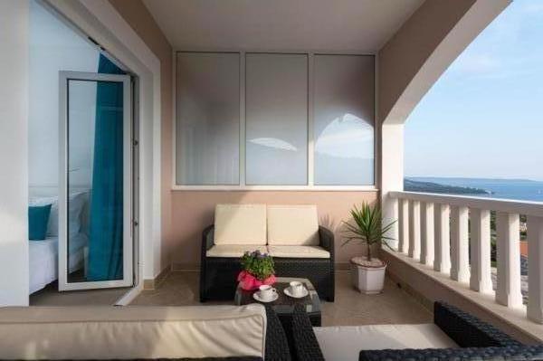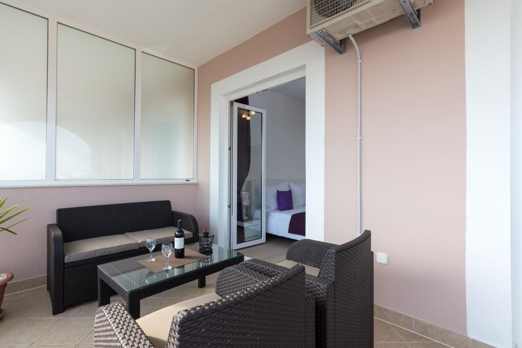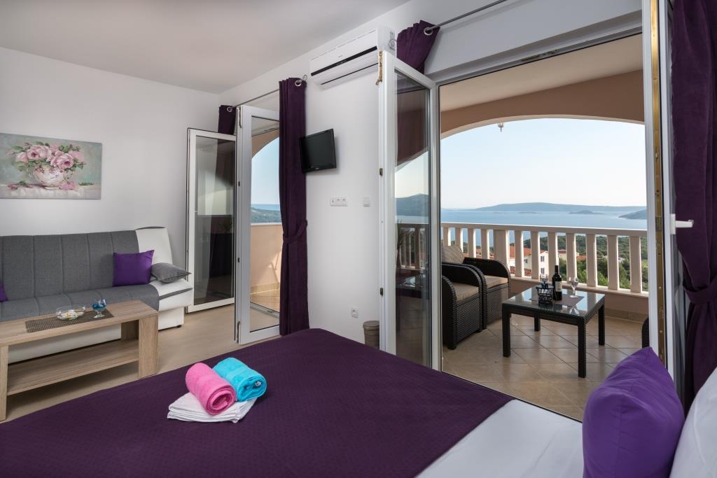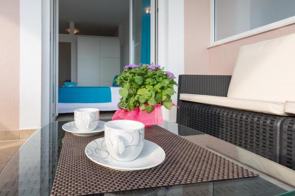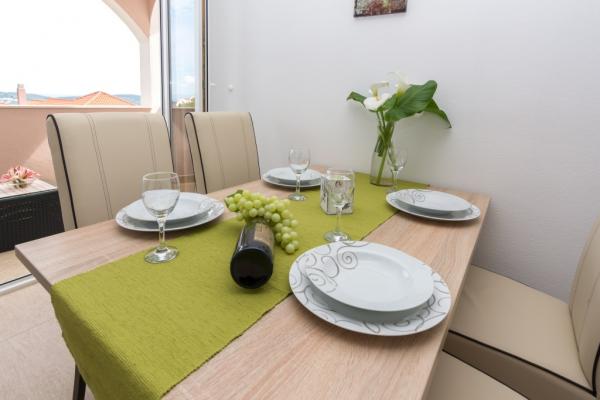 Naši klimatizirani, moderno uredjeni studio apartmani nose oznaku 4 zvjezdice.... Svaki apartman ima prekasran veliki balkon s kojeg se pruža pogled na more i otoke. Okružen je vlastitim posjedom s puno zelenila na kojem se uzgajaju limuni, naranče, masline, smokve.... Nalaze se u neposrednoj blizini kompleksa Medena. Od plaze na kojoj se nalaze brojni restorani, sportski tereni, sadržaji za djecu i odrasle udaljeni su tek 10- ak minuta hoda. Uneskov grad Trogir, Katedrala, Radovanov Portal, kula Karmelengo te brojni muzeji udaljeni su samo 3, 5 km. Povjesni grad Split samo 28 km, park prirode i slapovi Krke 50 km, a aerodrom Split -Kaštela 12 km.