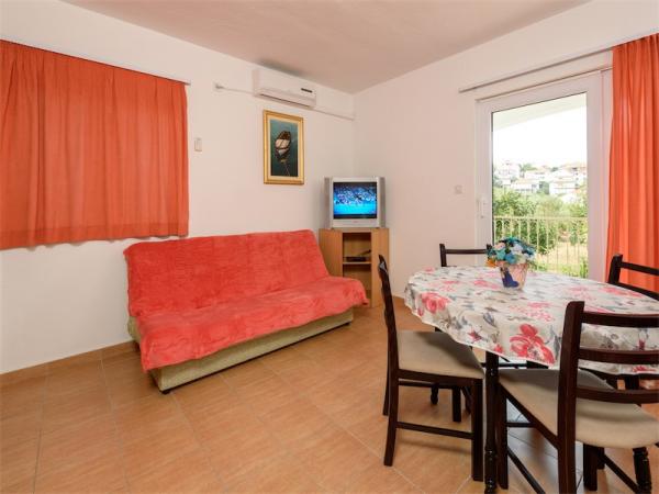 Dobro održavan, udoban stan. Nalazi se u mirnoj maloj ulici, max. 5 minuta od plaže. Ima vlastito parkiralište, a sobe su klimatizirane. Domaćin je dobra glava, uvijek na raspolaganju. Plaže su raznolike i čiste. Split, Trogir, Primošten, Rogoznica su u blizini!