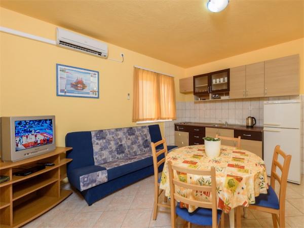 Apartmani Stella mogu samo preporučiti. Sve čisto, lijepo, dobro održavano. U blizini mira, kratka šetnja do plaže (ona koja je apsolutno prikladna za djecu), restorana, pizze ... itd. Vodeni taksi kratke udaljenosti do Trogira. Ugodan i uslužan vlasnik. Ovdje smo bili tjedan dana s prijateljima i složili smo se da tjedan dana nije dovoljno Zaista toplo preporučujemo.