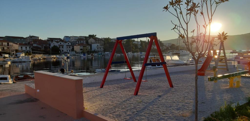 Turistička pristojba je uključena u cijenu.Mogućnost korištenja roštilja - gratis, te mogućnost korištenja veza za brod uz nadoplatu. Svega 100 metara od apartmana, na obali imate brodsku liniju za Trogir, kao i mogućnost kupnje izleta za brojne turističke destincacije i izletiša, te kupnje karte za fisch picnic; mjenjačnica; više restorana U blizini apartmana- svega 1 kilometar nalazi se turističko naselje Belvedere: kamp i apartmani sa svojim brojnim sadržajima za sport i rekreaciju: tenis, stolni tenis, sportovi na moru: sredstva za vuču: padobran, banana, tuba i sl. ; bankomat, bogati gastro svijet