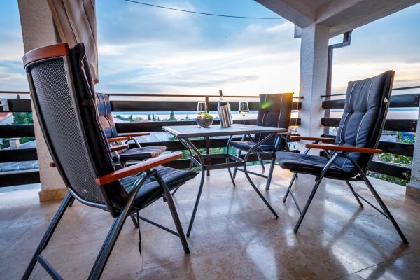 Kompletno i suvremeno opremljeni apartman u mirnom predjelu Selca. Apartman je na drugom katu sa prekrasnim pogledom na more. Korisnici apartmana imaju mogućnost korištenja uređenog vrta sa pergolom, roštiljem, vanjskim tušem i sunčalištem, te manjim sportskim terenom. Osigurani parking sa korisnike apartmana unutar zatvorenog dvorišta.