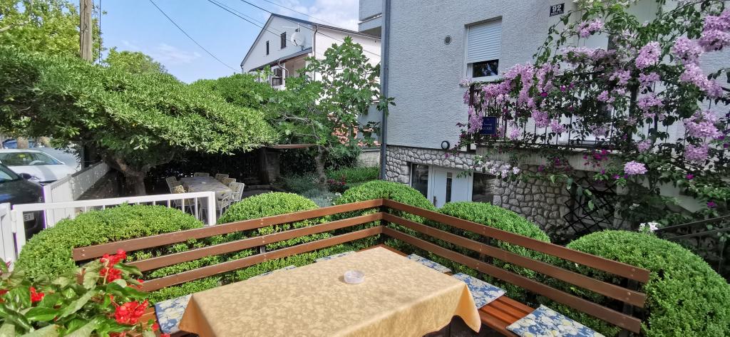 Kompletno i suvremeno opremljena dva apartmana blizu plaže smještena na polukatu ( apartman Perunika ) i prvom katu ( apartman Bugenvilija ). Oba apartmana imaju dva balkona i osiguran parking ispred kuće. Spavaća soba sa bračnim krevetom, dnevni boravak sa kaučem na razvlačenje i kuhinja sa blagovaonom su klimatizirane. Internet je besplatan. Objekt se nalazi 5 minuta hoda do centra te manje od 2 minuta ( 100 metara ) hoda do plaže.
