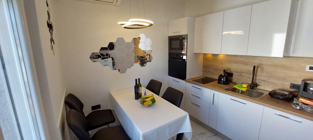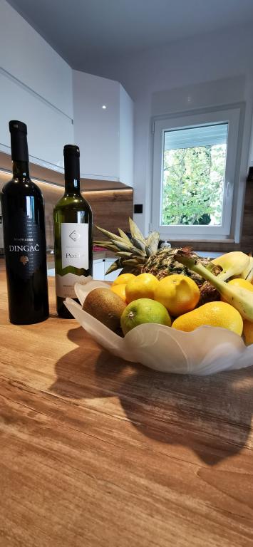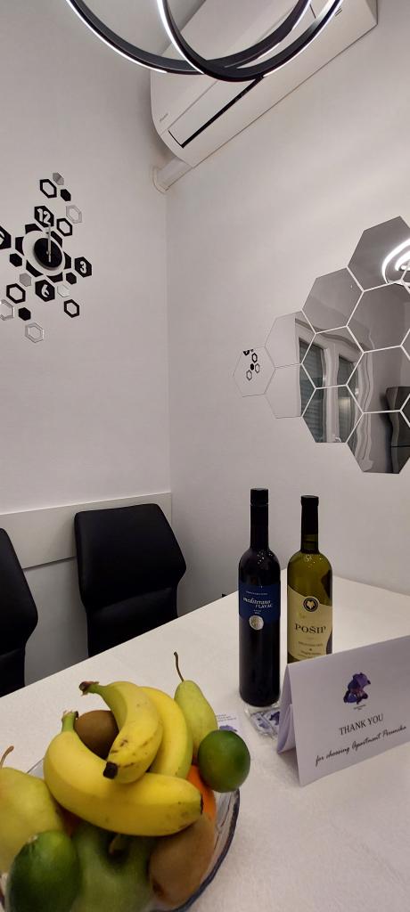 U apartmanu Vas čeka piće dobrodošlice, voće. Kozmetika u kupaoni uključena u cijenu.