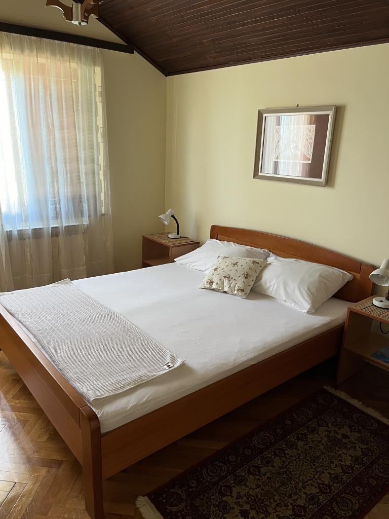Apartman za 4+1 (max. 5 osoba), 150m od mora, 7-10 min od centra, prekrasan pogled na more s velikog balkona, zelenilo, klima, free internet wi-fi, tv-satelitska, kuhinja s priborom, wc, kupaona, 2 spavaće sobe i dnevni boravak, parkirno mjesto. Cijena ovisno o datumu i broju osoba (minimum je 5 noćenja). U cijenu je uključena boravišna pristojba.