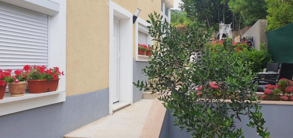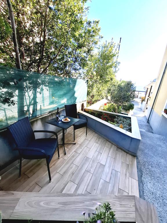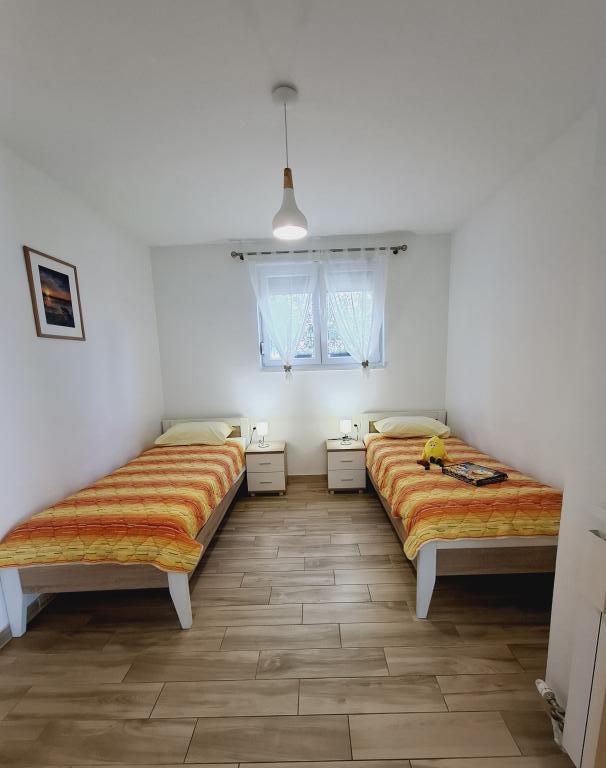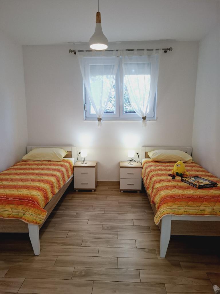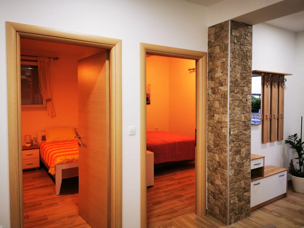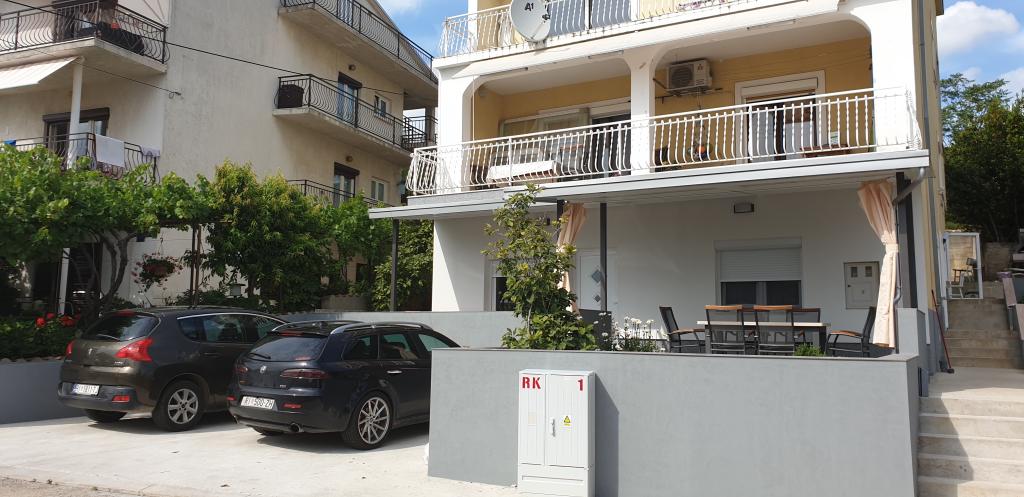 Apartman 1 se nalazi u prizemlju obiteljske kuće sa velikom zasebnom terasom i djelomičnim pogledom na more. Kompletno opremljen, klima, internet, parking. Nalazi se na cca 300 m od mora i plaže i centra mjesta. Sastoji se od dvije dvokrevetne spavaće sobe (jedna s bračnim krevetom jedna s dva odvojena kreveta), dnevnim boravkom, opremljenom kuhinjom s blagavaonom (perilica suđa) , kupaonicom (perilica rublja) i zasebnim wc-om. Parking za 1 vozilo je osigurano u dvorištu kuće. Studio apartman se nalazi u prizemlju (visoko prizemlje) obiteljske kuće. Ima kuhinju, bračni krevet 160x200 cm ,kupaonicu, klimu te manju terasu pred studiom. Zajedničko korištenje roštilja. Apartman Lea nalazi se na 2. katu.Ima 2 spavaće sobe, opremljenu kuhinju, kupaonicu (perilica rublja) , klimu, veliku terasu s pogledom na more. Parking za 1 auto osigurano u dvorištu kuće.