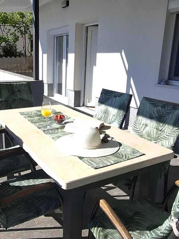 Jako dragi i ljubazni domaćini. Prekrasan novouređeni studio apartman sa šarmantnom terasom ispred s pogledom na more, plaža blizu. Ima sve što vam treba za napuniti baterije. Osobito hvala gazdarici Marini na susretljivosti i ljubaznosti. Zadovoljni Slavonci