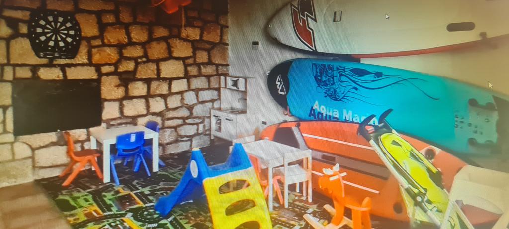 Našim gostima nudimo dodatne sadržaje kao što su ležaljke i suncobrani (uračunato u cijenu) koje mogu odnijeti na plažu ispred kuće, biciklovi za odrasle i za djecu, daske za surfanje, kajak, igraonica za djecu, klime i ostalo.