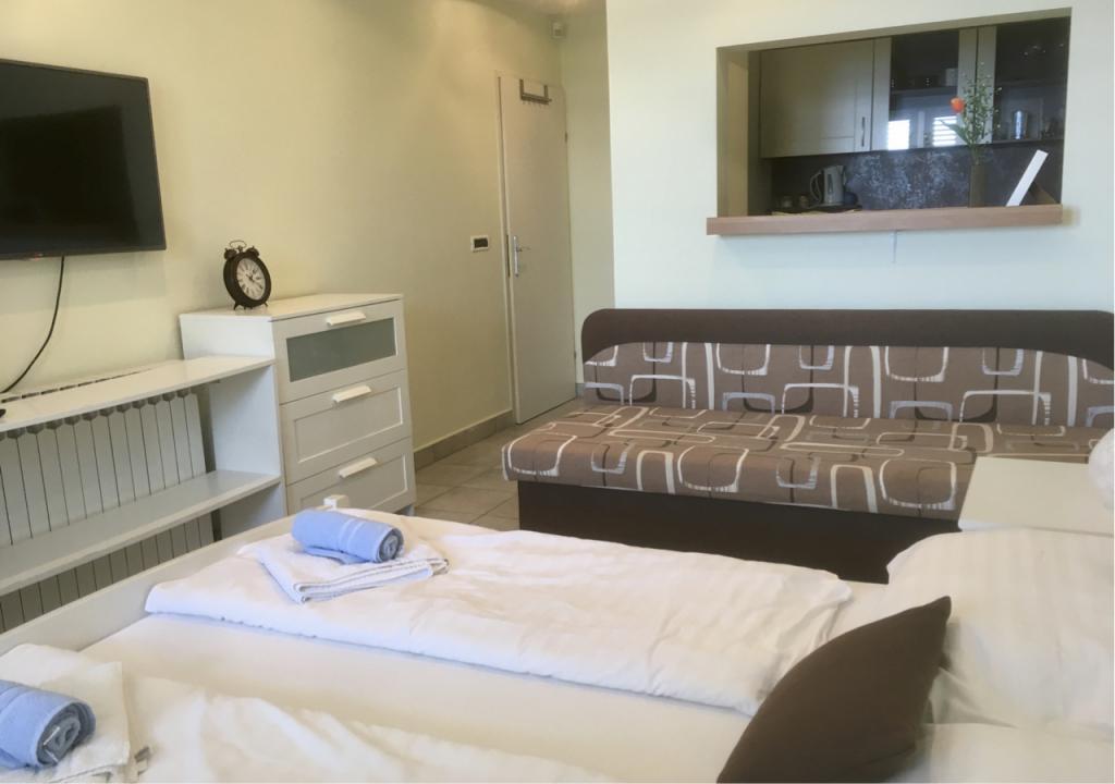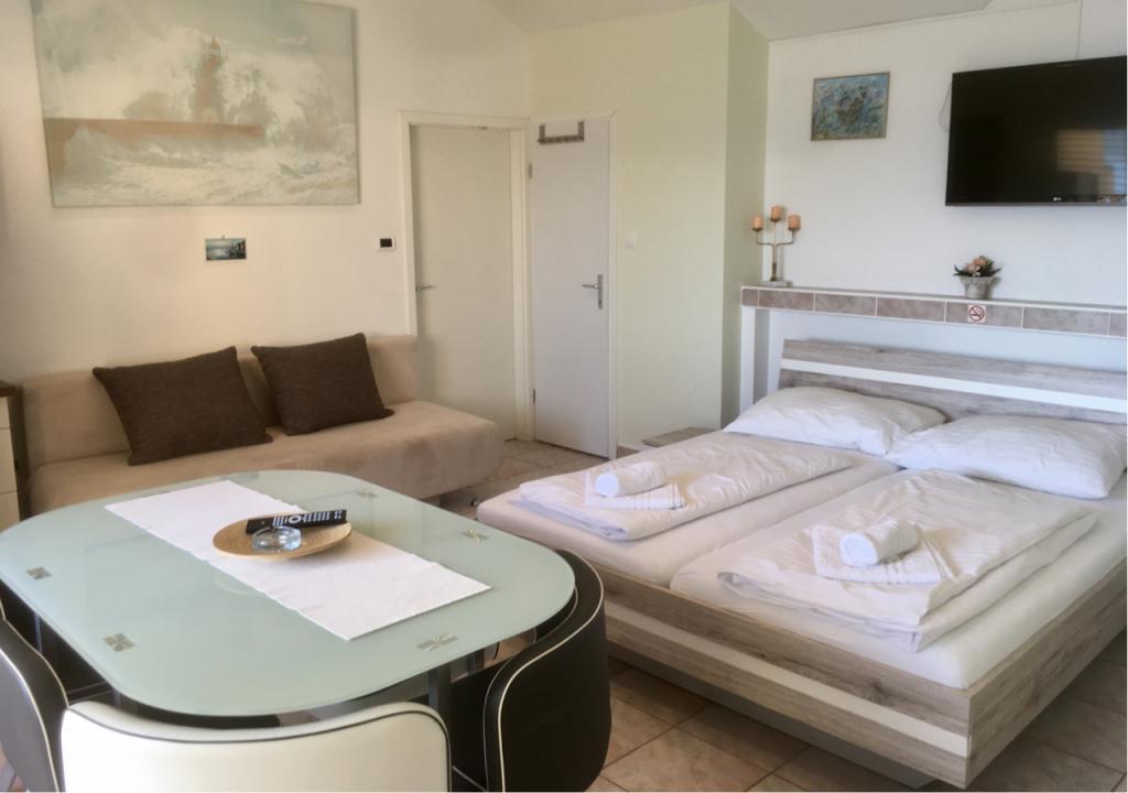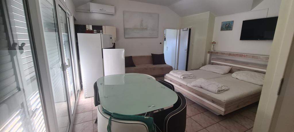 Apartman uredan, čist i ukusno namješten te dobro opremljen. Na raspolaganju su ležaljke, suncobrani, daske ,bicikli, dječja igraonica... Osim lokacije (prvi red do mora) oduševljeni smo vrlo srdačnom domaćicom Brankom koja je gostu na usluzi u svako doba. Nenametljiva, vesela, dobronamjerna i topla gospođa Branka može bit primjer svim iznajmljivačima kakav treba biti dobar domaćin. Preporučujemo svima, starijim i mlađima te obiteljima s djecom. Doručak uključen u cijenu raznolik i primjeren svim ukusima.