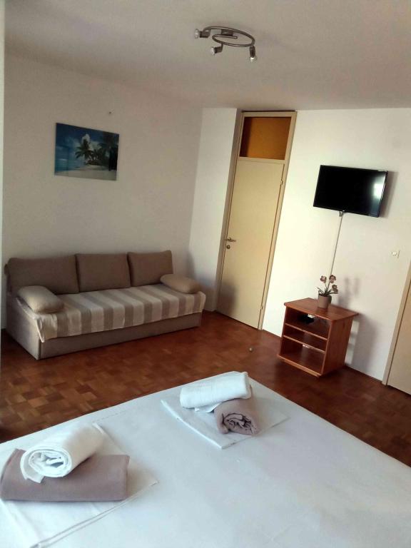 Pročitaj više Smještajne jediniceUobičajena je uplata akontacije u iznosu 200 €, a ostatak se plaća po dolasku. Pravilo je da gosti napuštaju apartmane do 10 sati prije podne, a novi gosti ulaze u 14 sati popodne (ukoliko je apartman spreman može i ranije). Korištenje klima uređaja se dodatno naplaćuje , i to za manje apartmane 5€/dan, a za veće apartmane 7€/dan. U apartmanima u kojima su dozvoljeni kućni ljubimci dodatno se naplaćuje 5€/dan.
