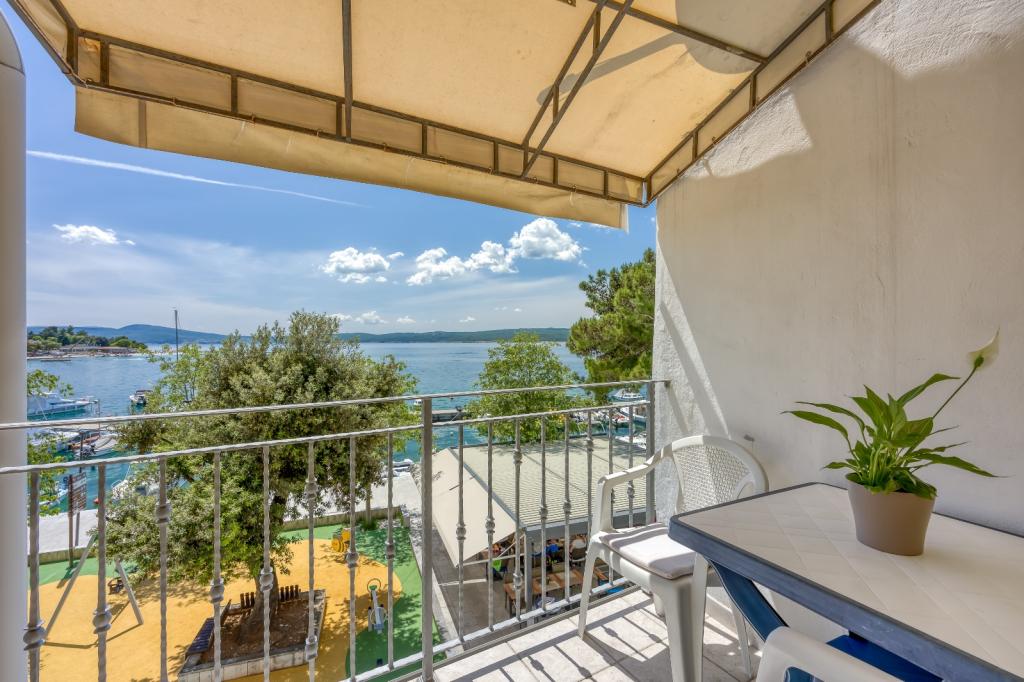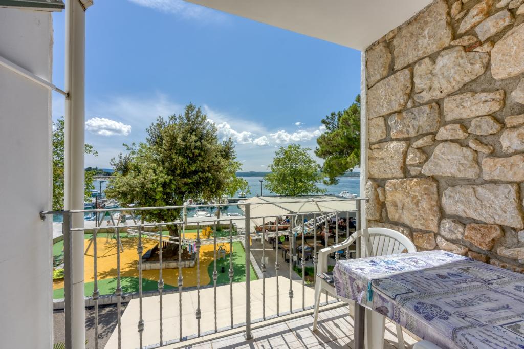 Apartman se nalazi u prizemlju objekta, pogled na more, kompletno opremljen, smješten prvi red do mora i u centru mjesta. Blizina svih sadržaja. Apartman se sastoji od kuhinje, dnevni boravak s ležajem na razvlačenje, spavaća soba, kupaona, ispred ulaza u apartman mala terasa s pogledom na more.